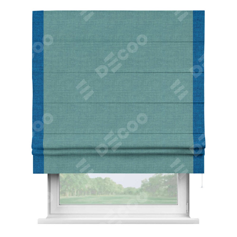 Римская штора «Кортин» с кантом Стрим Дуо, для проема, ткань лён бирюза, ширина 40−60 см