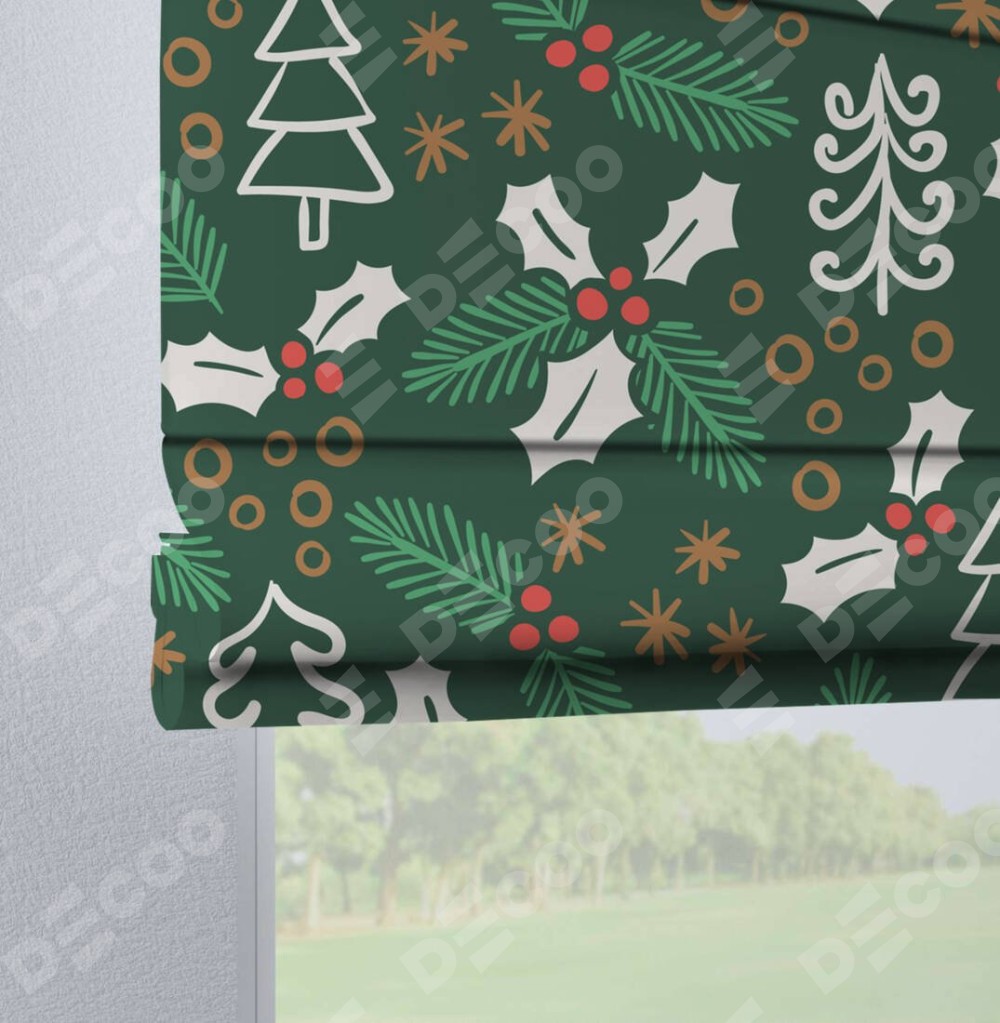 Римская штора на петлях «Рождественский узор»