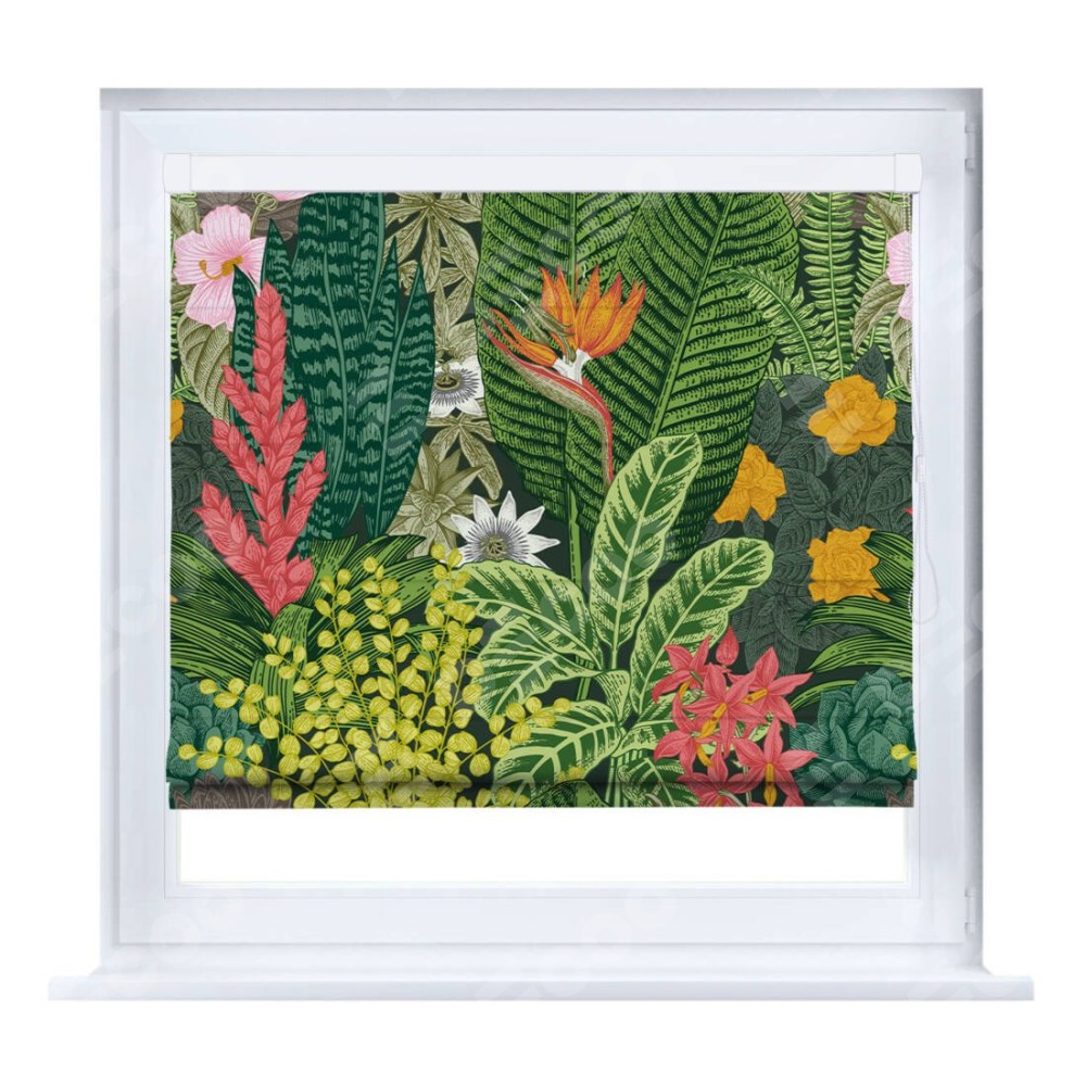 Римская штора производителя «Cortin», устанавливается на створку окна, пошита из ткани блэкаут с нанесением сублимационной печати «Яркое цветение». Штора шьётся по индивидуальным размерам, для данного типа римской шторы возможная ширина от 35 до 150 см., высота до 250 см.