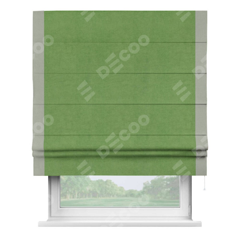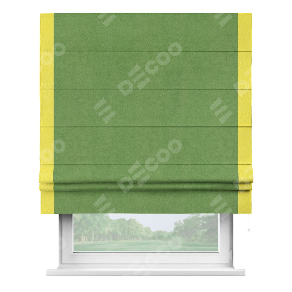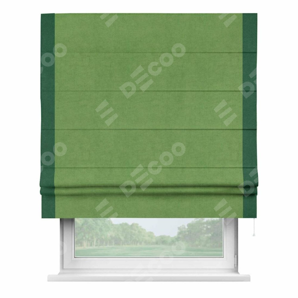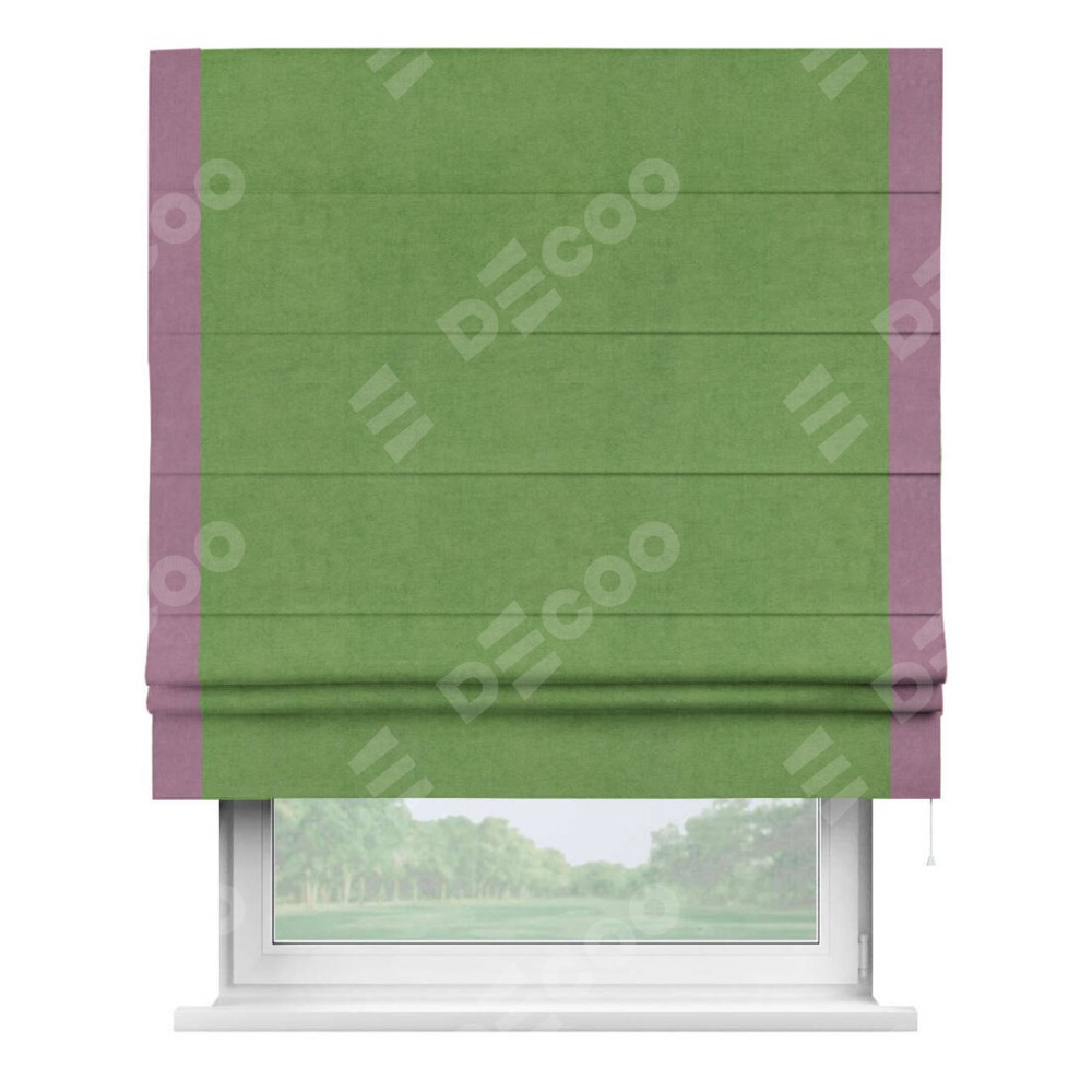 Римская штора «Кортин» с кантом Стрим Дуо, для проема, ткань вельвет салатовый