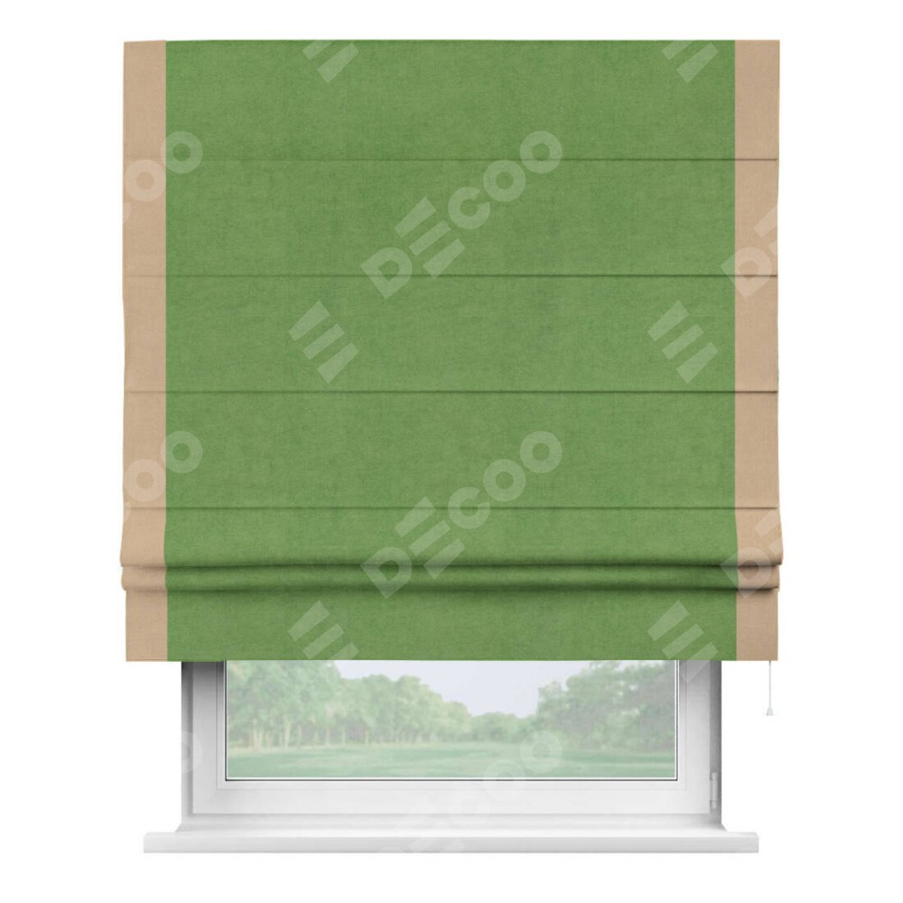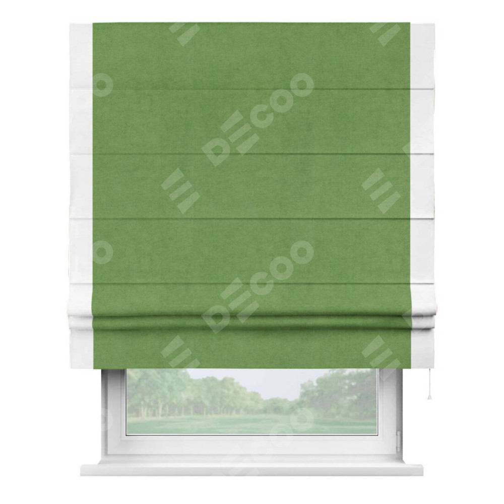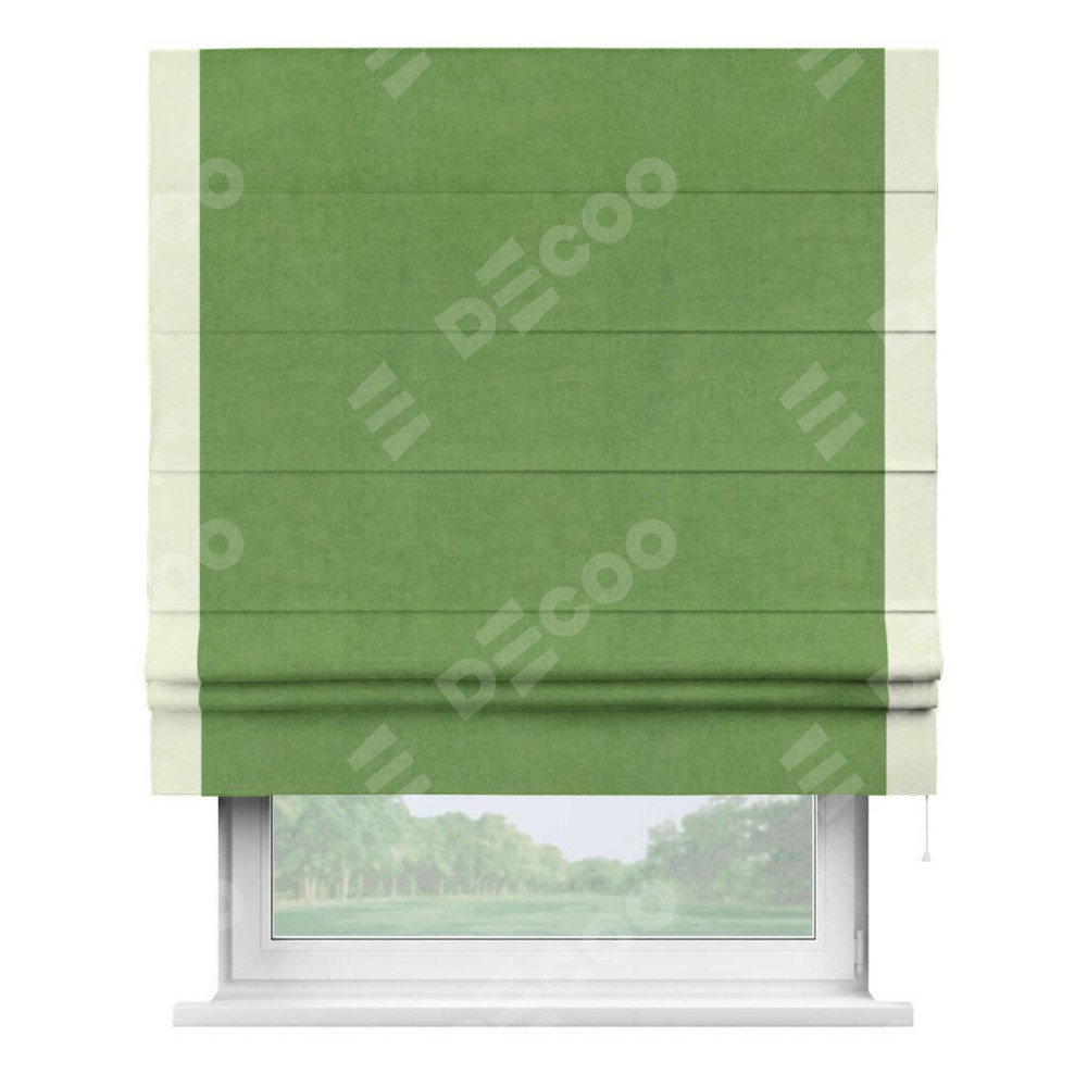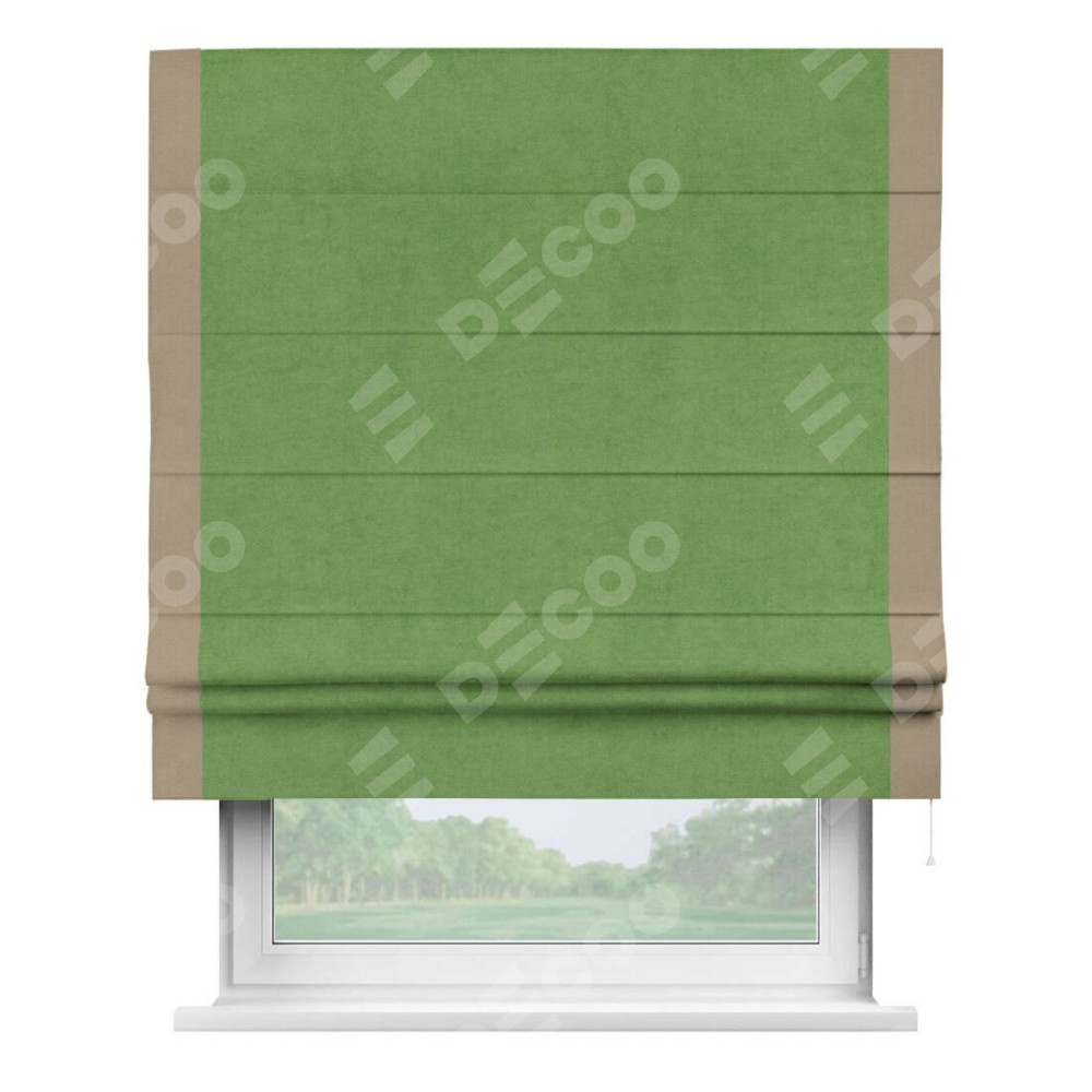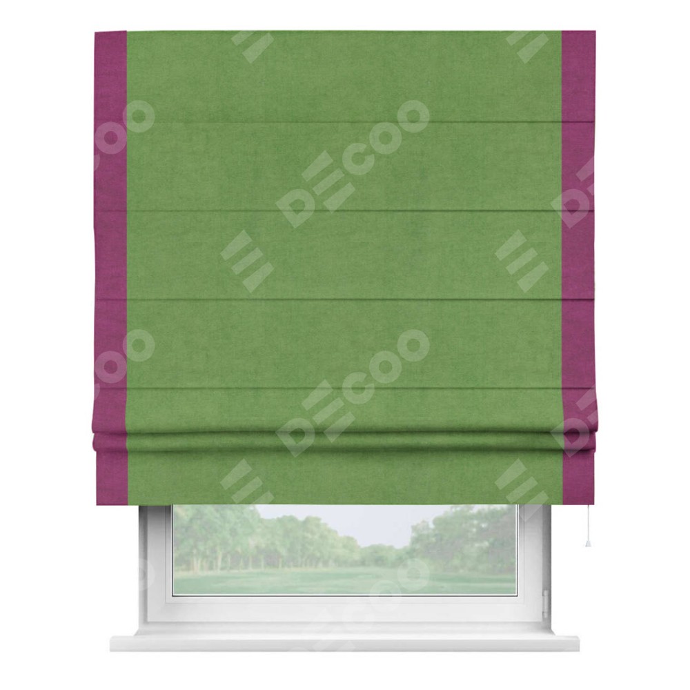 Римская штора «Кортин» с кантом Стрим Дуо, для проема, ткань вельвет салатовый