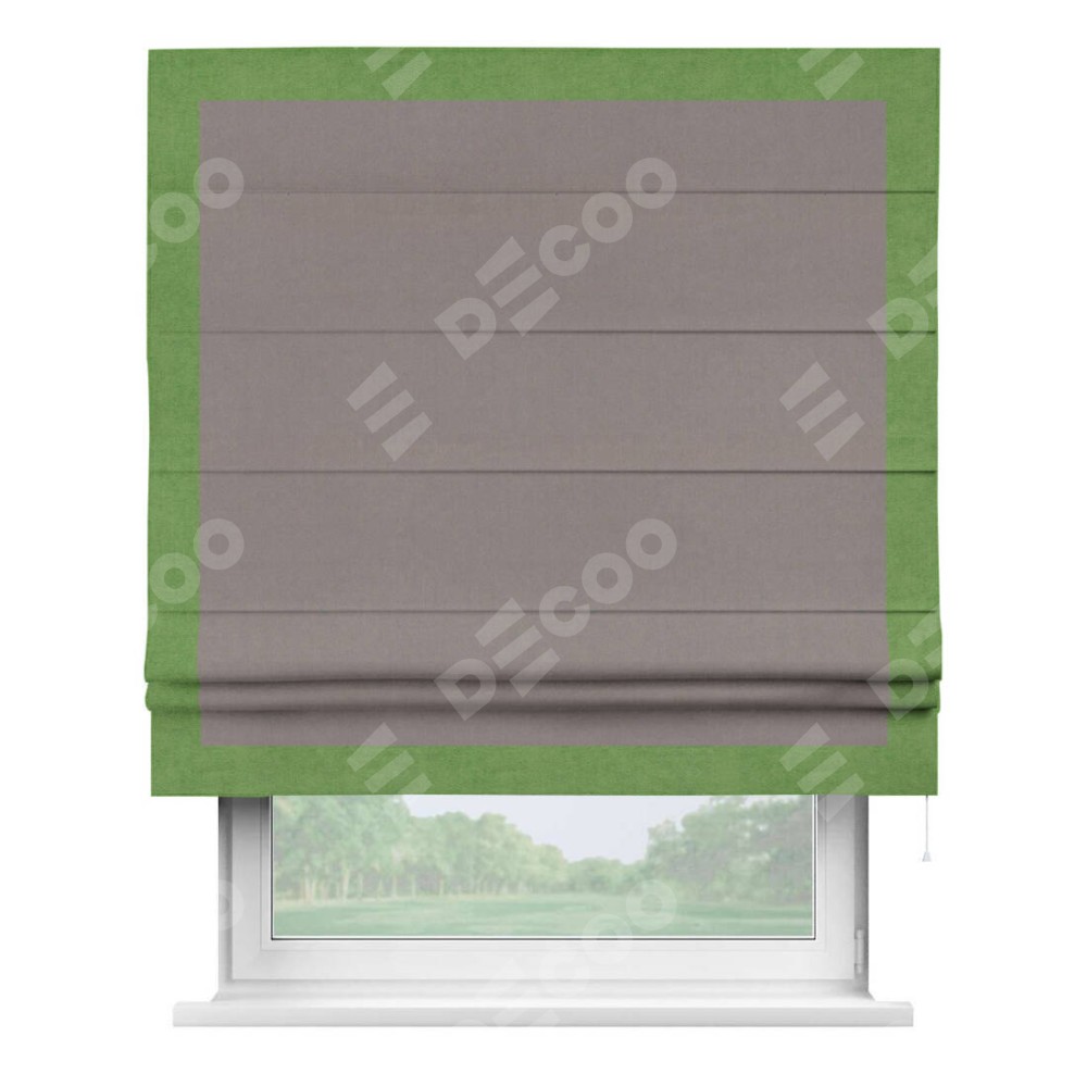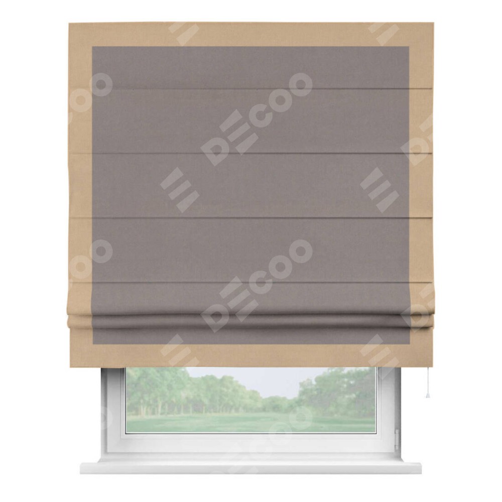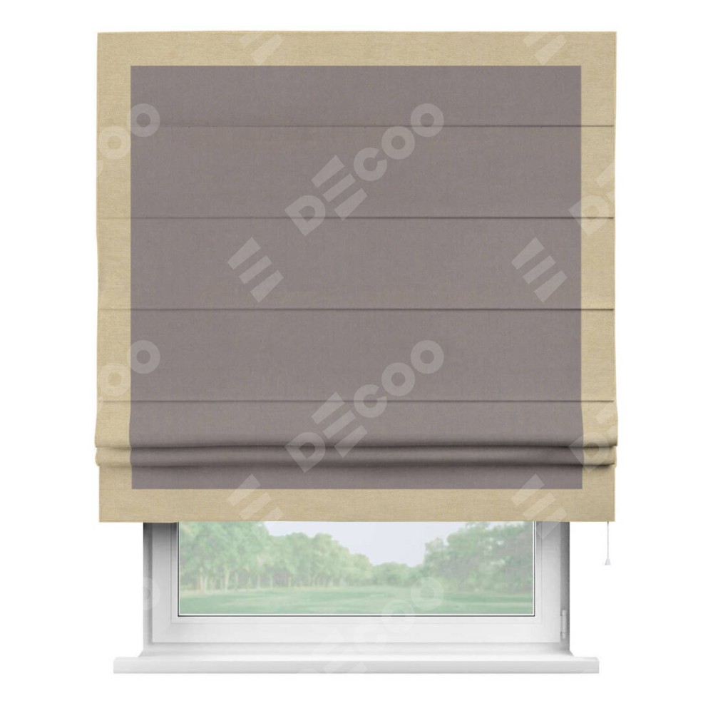 Римская штора производителя «Cortin», используется для проёма, пошита из ткани вельвет темно-бежевый, артикул ткани 82527. Отделка шторы кантом «Чесс», ткань для канта используется из вельвета разной расцветки на выбор. Имеет универсальный механизм и подходит для монтажа: на потолок, на стену и в нишу.