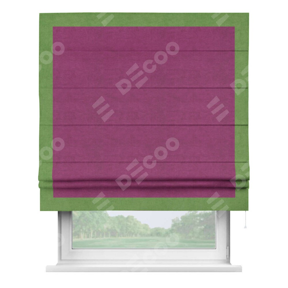 Римская штора «Кортин» с кантом Чесс, для проема, ткань вельвет фиолетовый