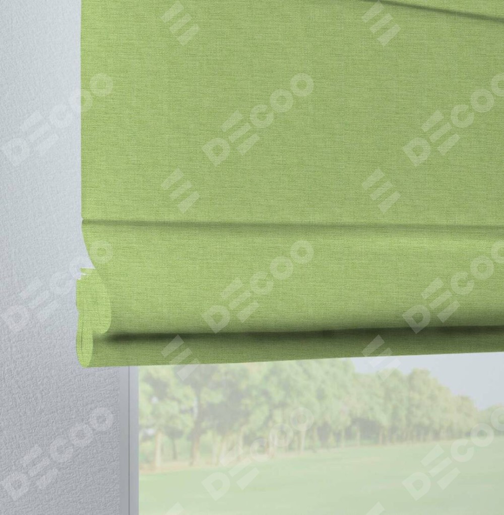 Римская штора производителя «Cortin», используется для проёма, пошита из ткани лён зеленый, артикул ткани 85906. Данная модель пошита на петлях, комплектуется на выбор круглым карнизом и подходит для монтажа на стену. Римская штора на петлях имеет простую систему регулировки высоты, отличительным преимуществом данной модели является простой способ монтажа. Достаточно повесить ее на трубу и штора готова!