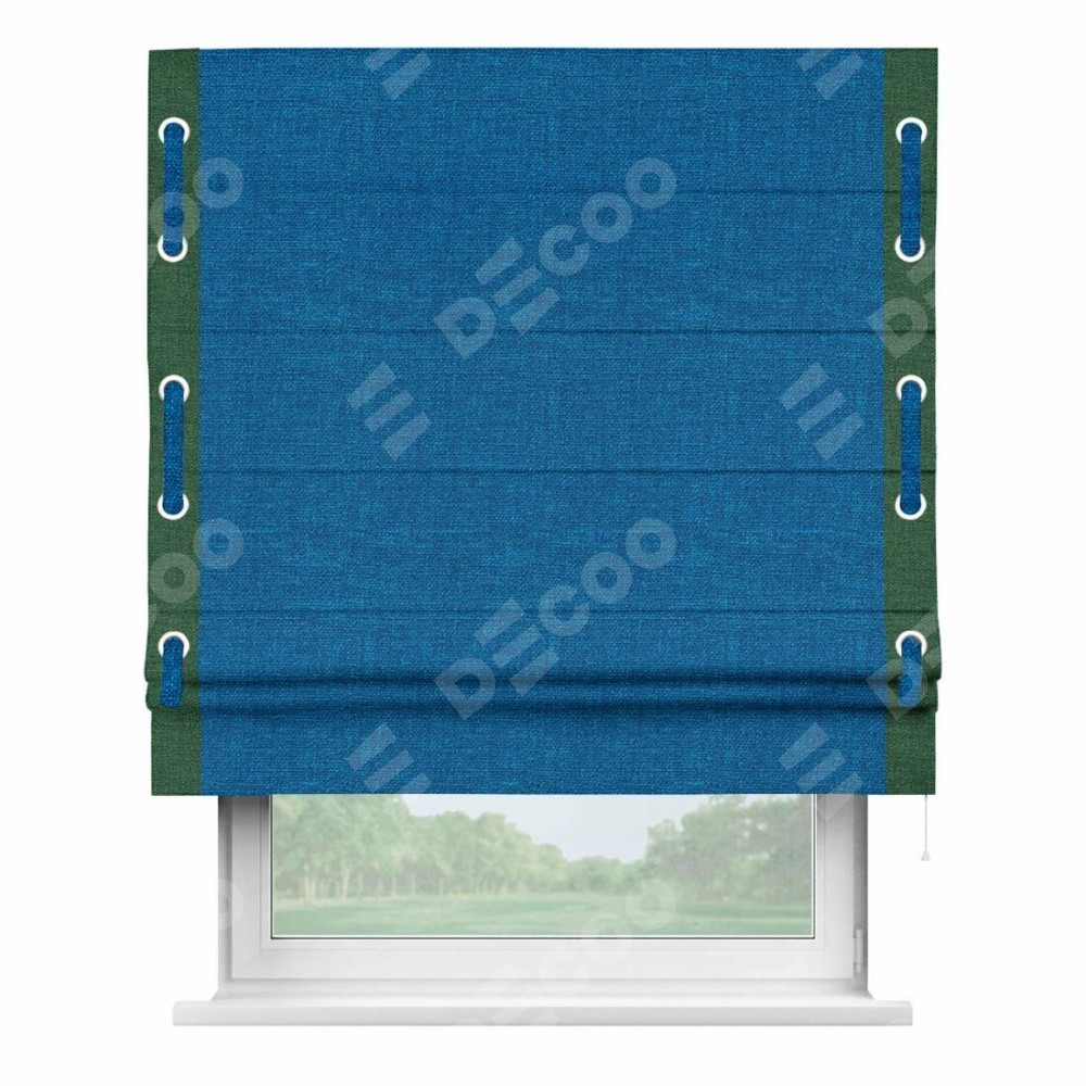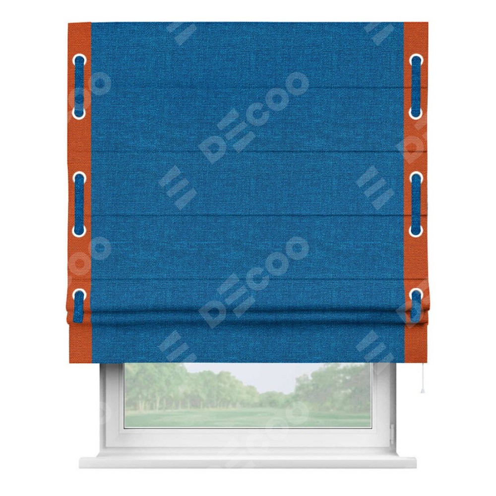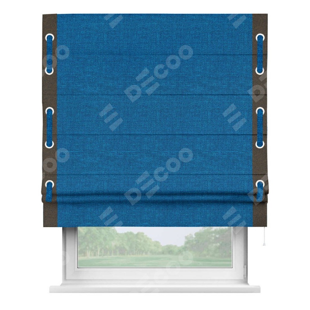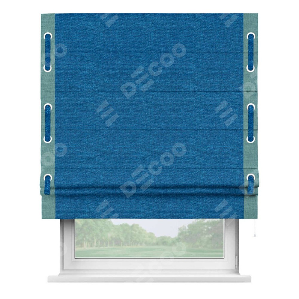 Римская штора «Кортин» с кантом Стрим Дуо (люверсы с пояском), для проема, ткань лён синий