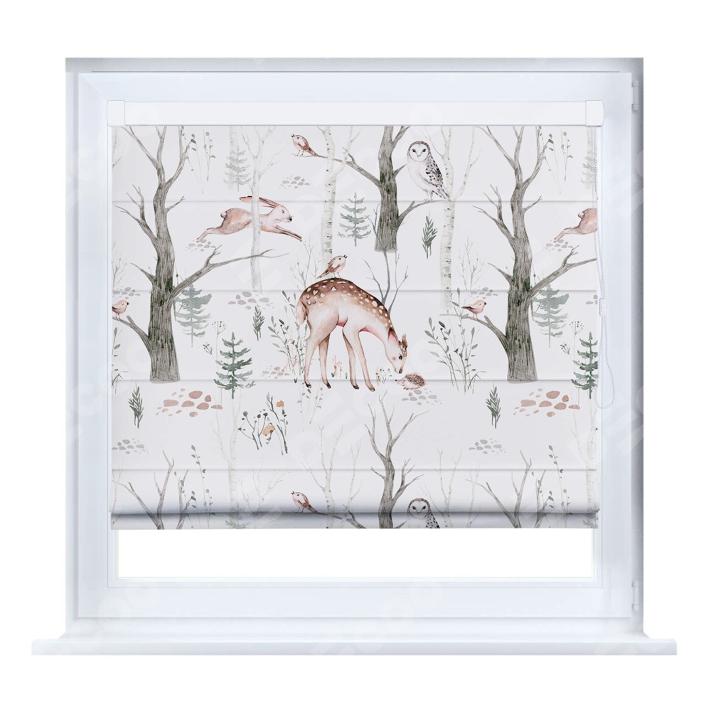 Римская штора производителя «Cortin», устанавливается на створку окна, пошита из ткани блэкаут с нанесением сублимационной печати «Скандинавский питомник». Штора шьётся по индивидуальным размерам, для данного типа римской шторы возможная ширина от 35 до 150 см., высота до 250 см.