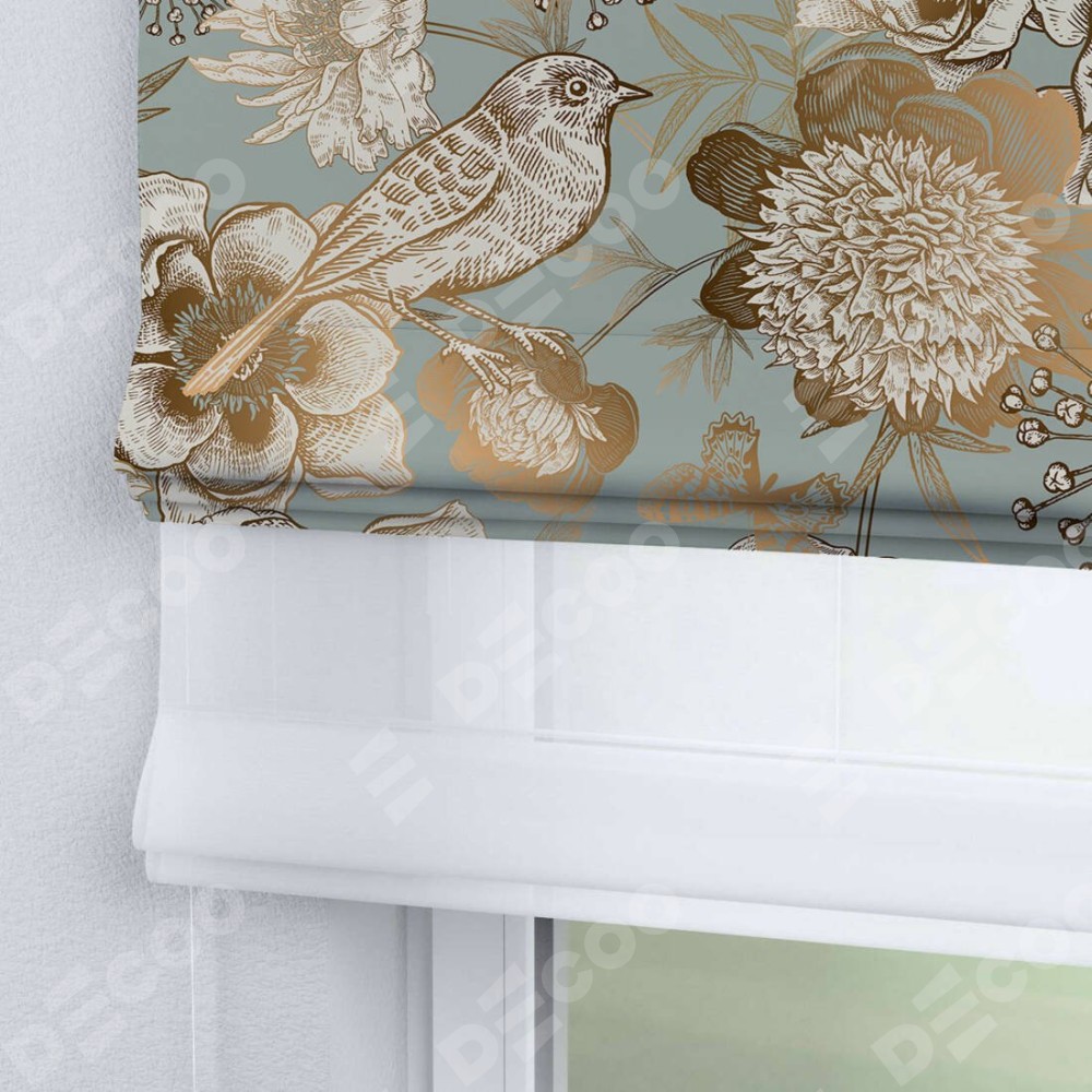 Римская штора день-ночь производителя «Cortin», используется для проёма, пошита из двух полотен, с лицевой блэкаут с нанесением сублимационной печати «Садовые цветы», вторая ткань тюль (по стандарту комплектуется тюль белого цвета артикул V-01). Имеет универсальный механизм и подходит для монтажа: на потолок, на стену и в нишу.