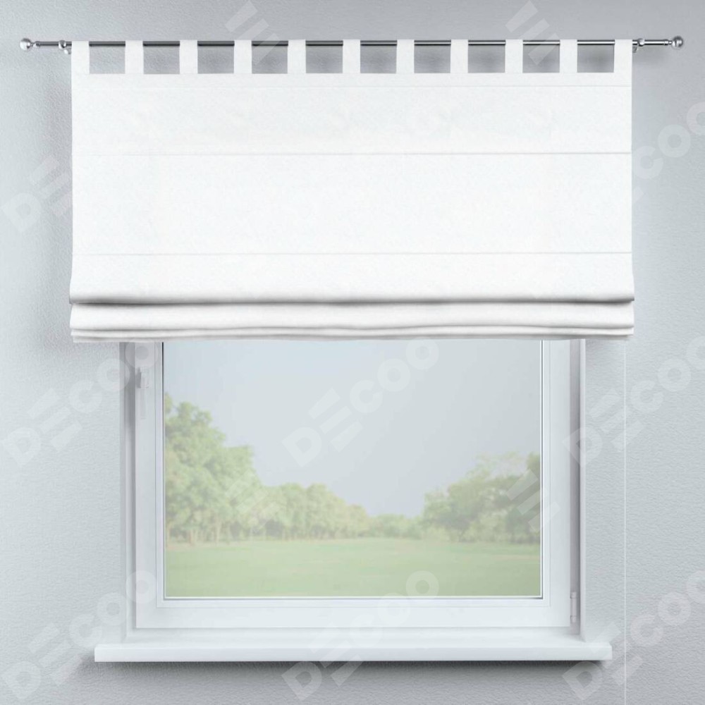 Римская штора производителя «Cortin», используется для проёма, пошита из ткани вельвет белоснежный, артикул ткани 19192. Данная модель пошита на петлях, комплектуется на выбор круглым карнизом и подходит для монтажа на стену. Римская штора на петлях имеет простую систему регулировки высоты, отличительным преимуществом данной модели является простой способ монтажа. Достаточно повесить ее на трубу и штора готова!