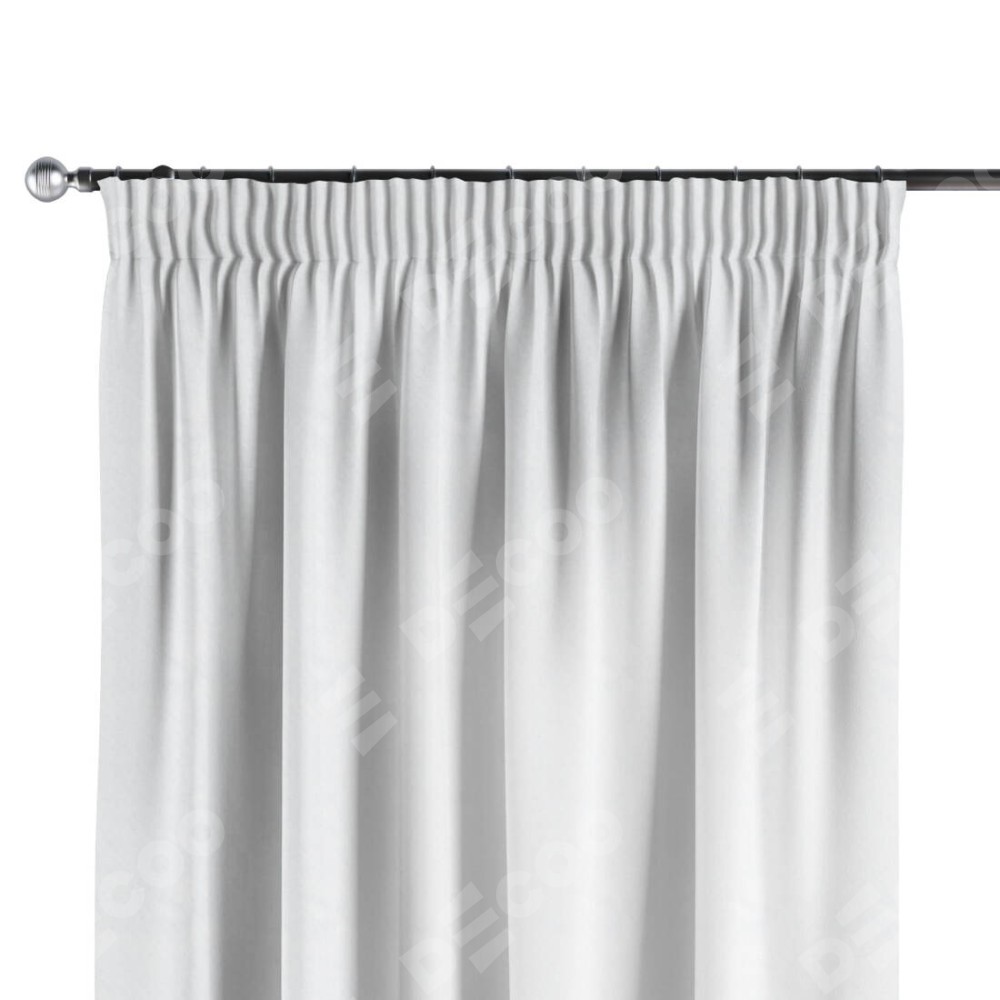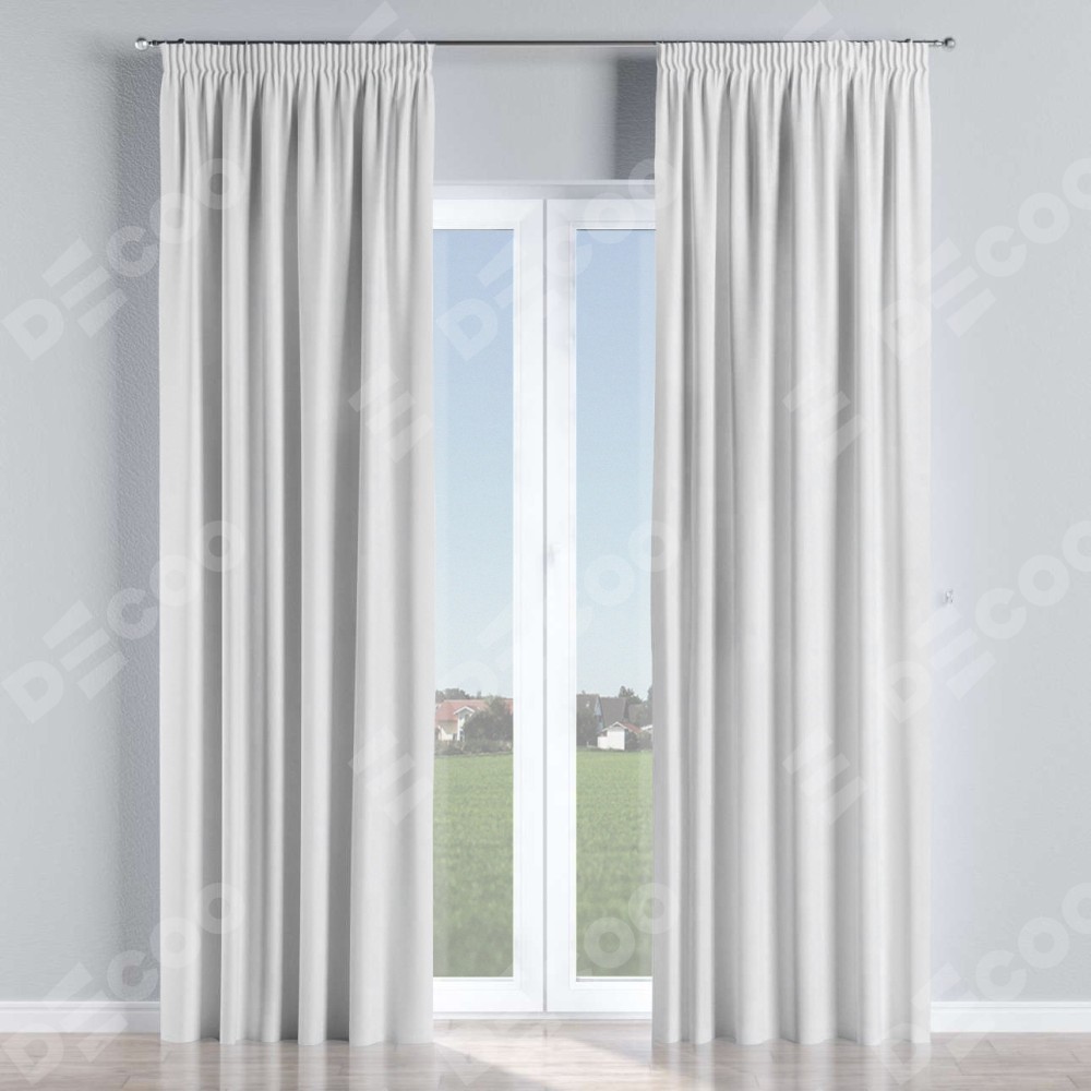 Комплект прямых штор, от производителя «Cortin», пошиты из ткани вельвет белоснежный, артикул ткани 19192. С изнаночной стороны в верхней части штор пристрачивается шторная лента с декоративными складками «Карандаш». Для создания элегантных складок прямые шторы шьются по стандарту с коэффициентом 1:2 (на 100 см. ширины проёма 200 см. ширины ткани).
