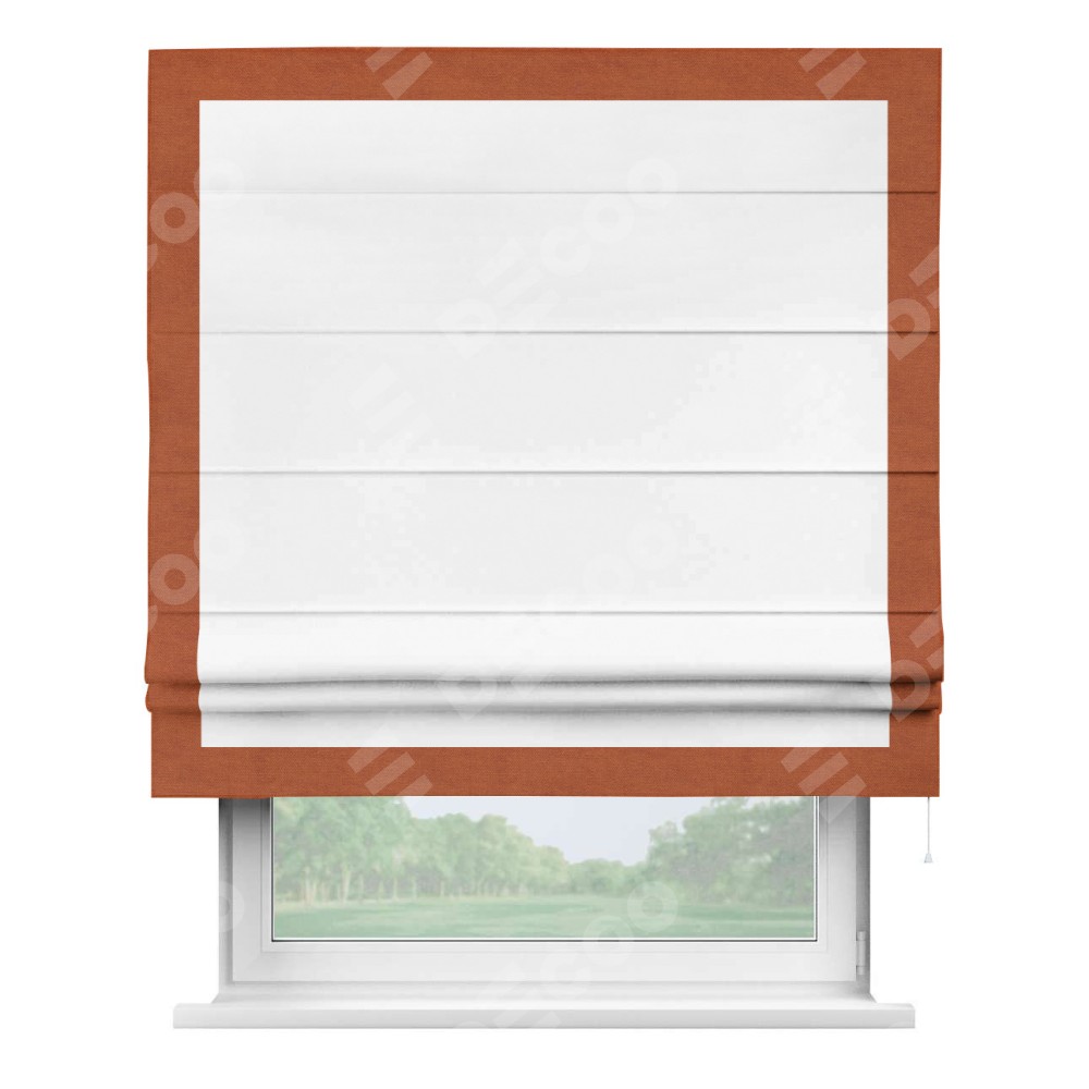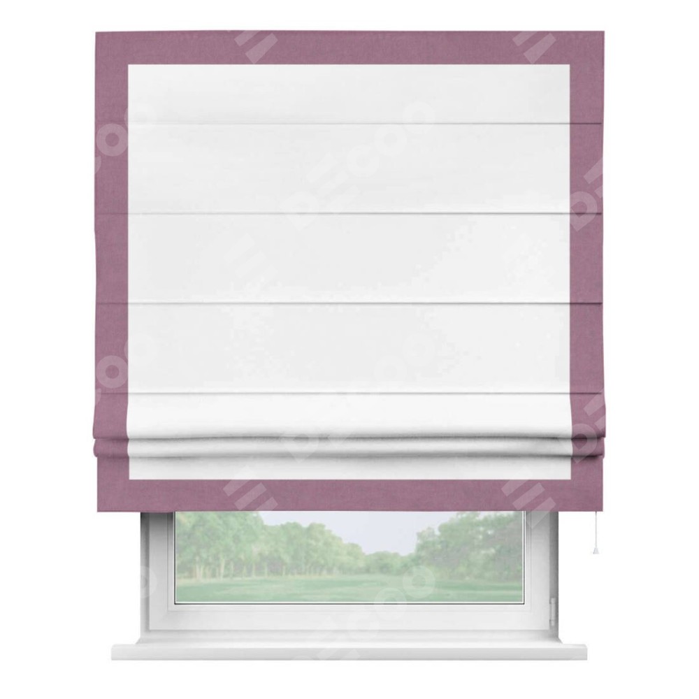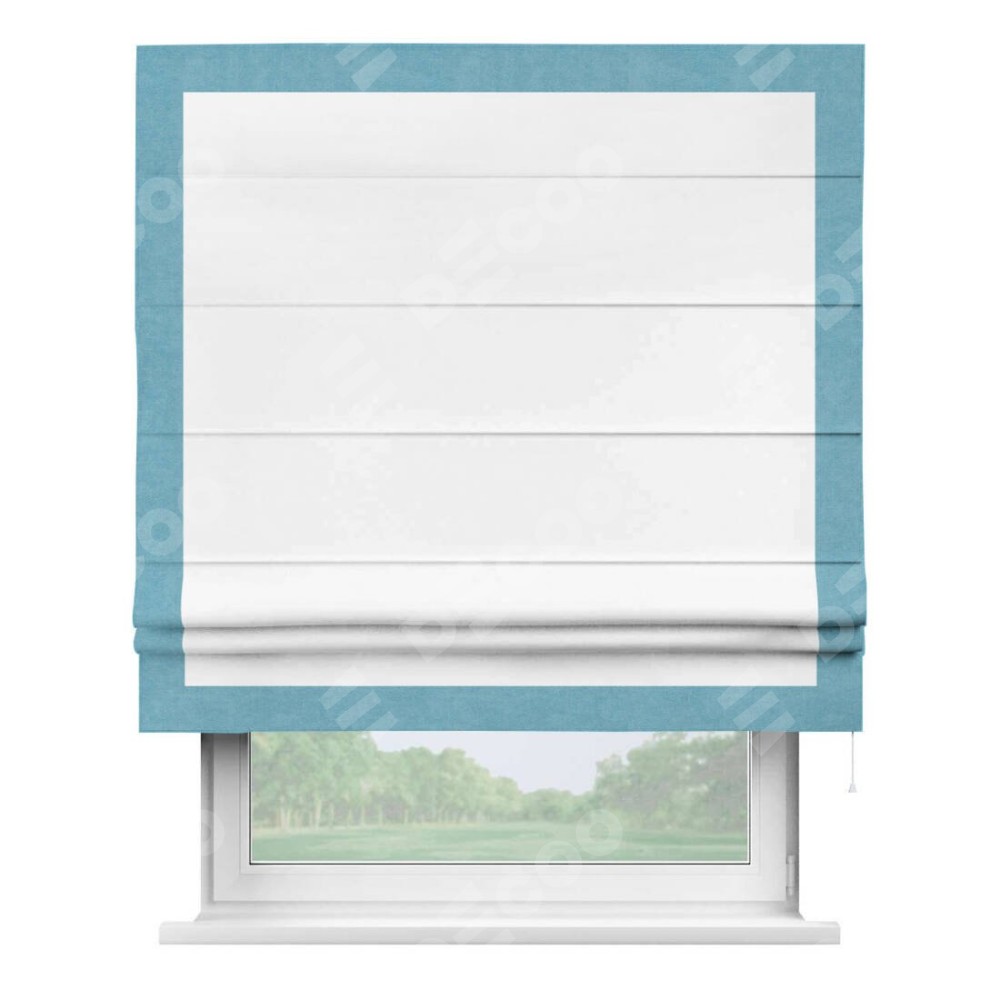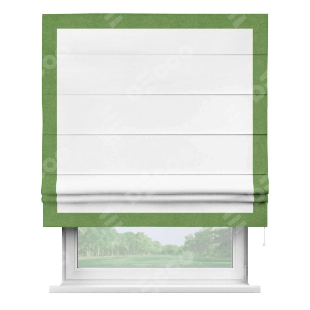 Римская штора «Кортин» с кантом Чесс, для проема, ткань вельвет белоснежный