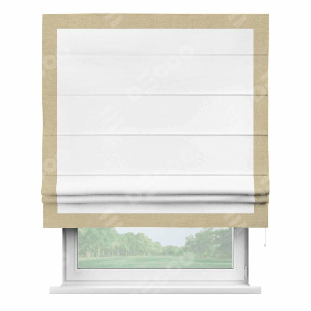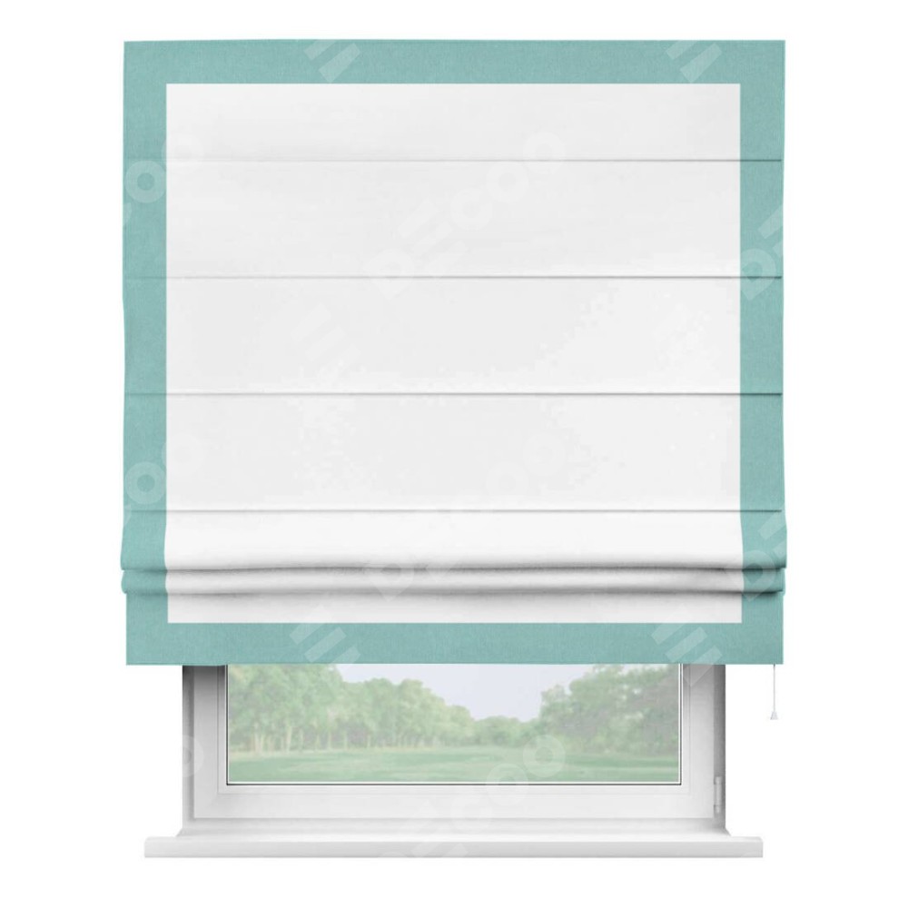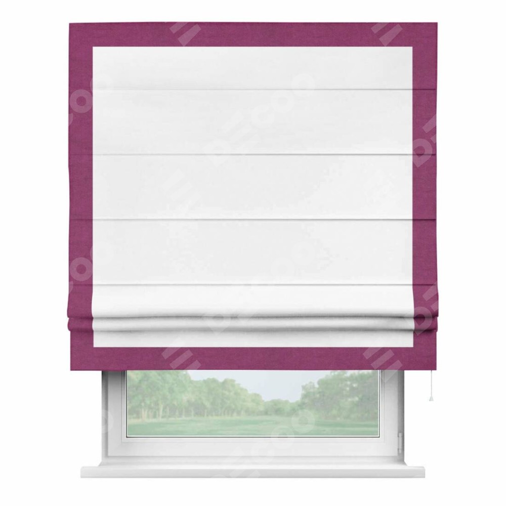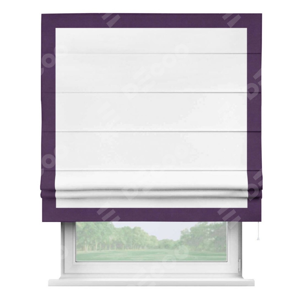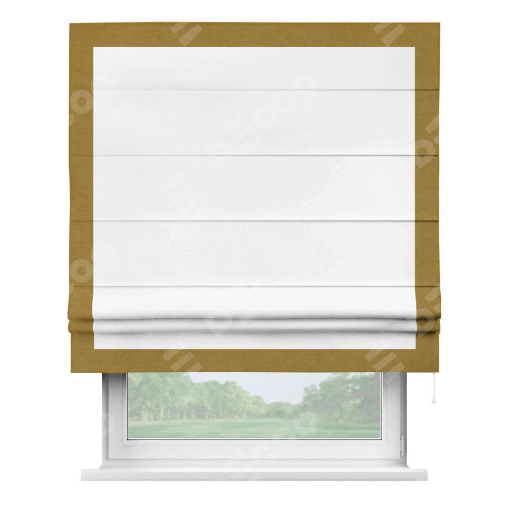 Римская штора «Кортин» с кантом Чесс, для проема, ткань вельвет белоснежный