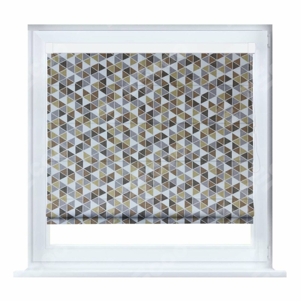 Римская штора производителя «Cortin», устанавливается на створку окна, пошита из ткани димаут «Треугольники коричневые», артикул 23021. Штора шьётся по индивидуальным размерам, для данного типа римской шторы возможная ширина от 35 до 150 см., высота до 250 см.