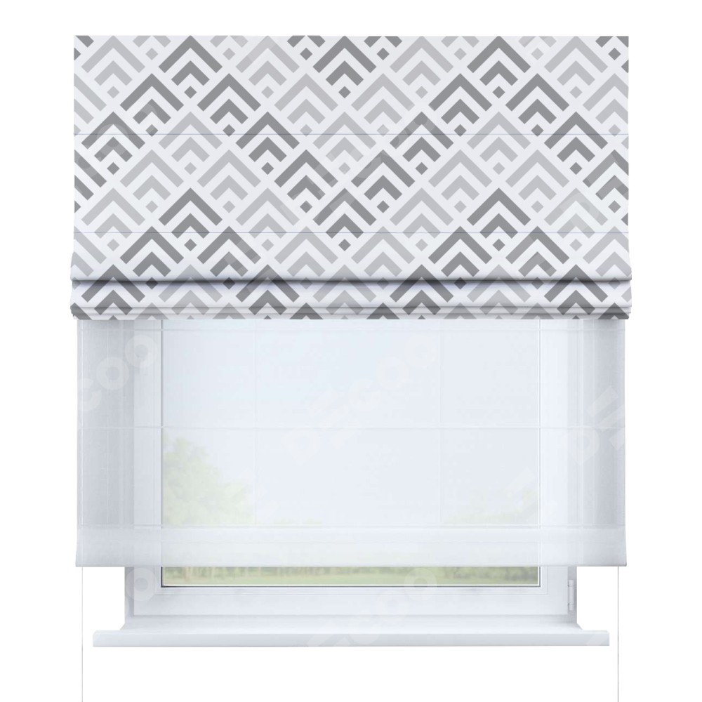 Римская штора день-ночь производителя «Cortin», используется для проёма, пошита из двух полотен, с лицевой блэкаут с нанесением сублимационной печати «Пространство», вторая ткань тюль (по стандарту комплектуется тюль белого цвета артикул V-01). Имеет универсальный механизм и подходит для монтажа: на потолок, на стену и в нишу.