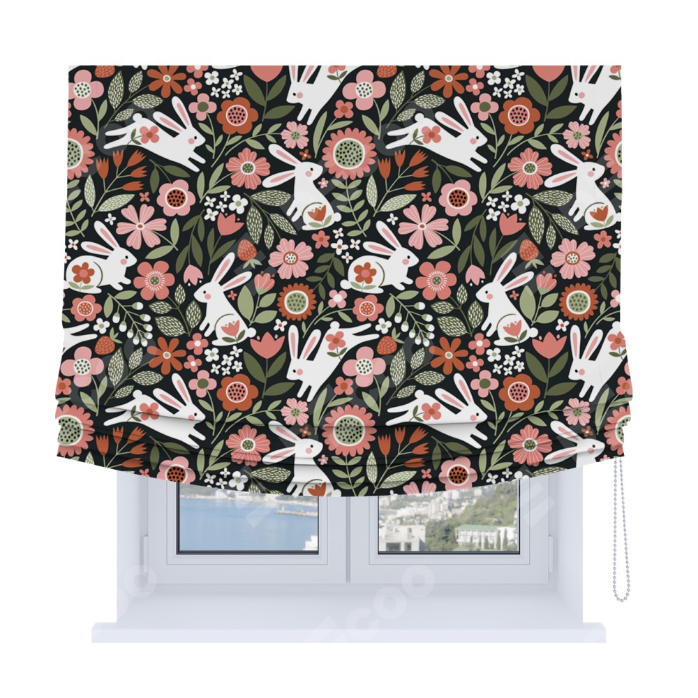 Римская штора Soft с мягкими складками, «Зайчики в цветнике»