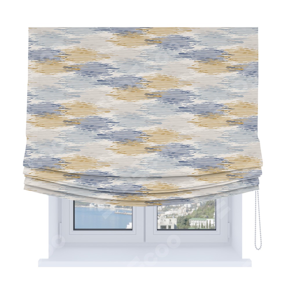 Римская штора Soft производителя «Cortin», используется для проёма, пошита из ткани блэкаут с нанесением сублимационной печати «Полосатая волна». Имеет универсальный механизм и подходит для монтажа: на потолок, на стену и в нишу. В отличие от стандартных римских штор, римская штора Soft не имеет горизонтальных вставок и нижнего отвеса. Это позволяет ткани произвольно драпироваться в свободные мягкие складки.