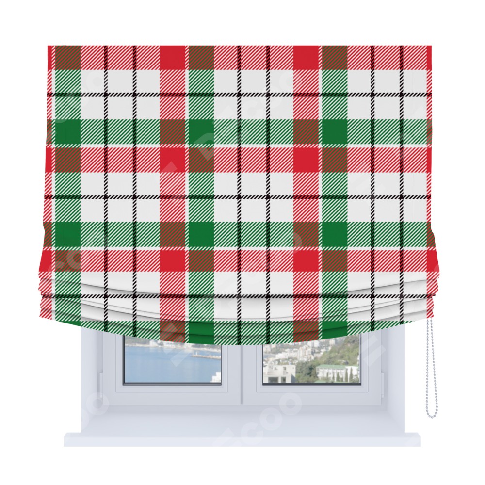 Римская штора Soft производителя «Cortin», используется для проёма, пошита из ткани блэкаут с нанесением сублимационной печати «Трёхцветная клетка». Имеет универсальный механизм и подходит для монтажа: на потолок, на стену и в нишу. В отличие от стандартных римских штор, римская штора Soft не имеет горизонтальных вставок и нижнего отвеса. Это позволяет ткани произвольно драпироваться в свободные мягкие складки.