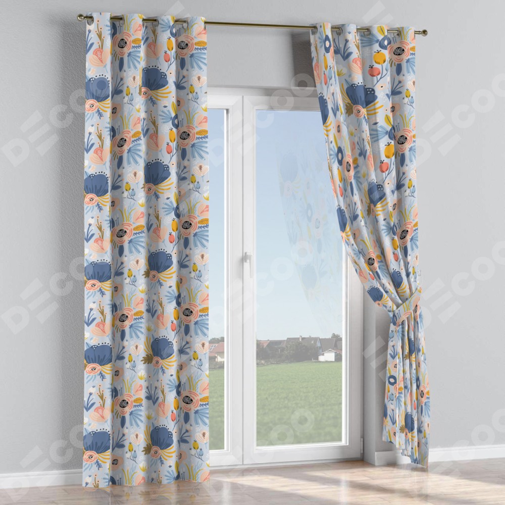 Комплект прямых штор, от производителя «Cortin», пошиты из ткани блэкаут с нанесением сублимационной печати «Волшебные цветы». Данная модель пошита на люверсах, комплектуется на выбор круглым карнизом и подходит для монтажа на стену или потолок. Прямые шторы на люверсах шьются по стандарту с коэффициентом 1/2 (на 100 см. ширины проёма 200 см. ширины ткани), отличительным преимуществом данной модели является простой способ монтажа. Достаточно повесить ее на трубу и штора готова!