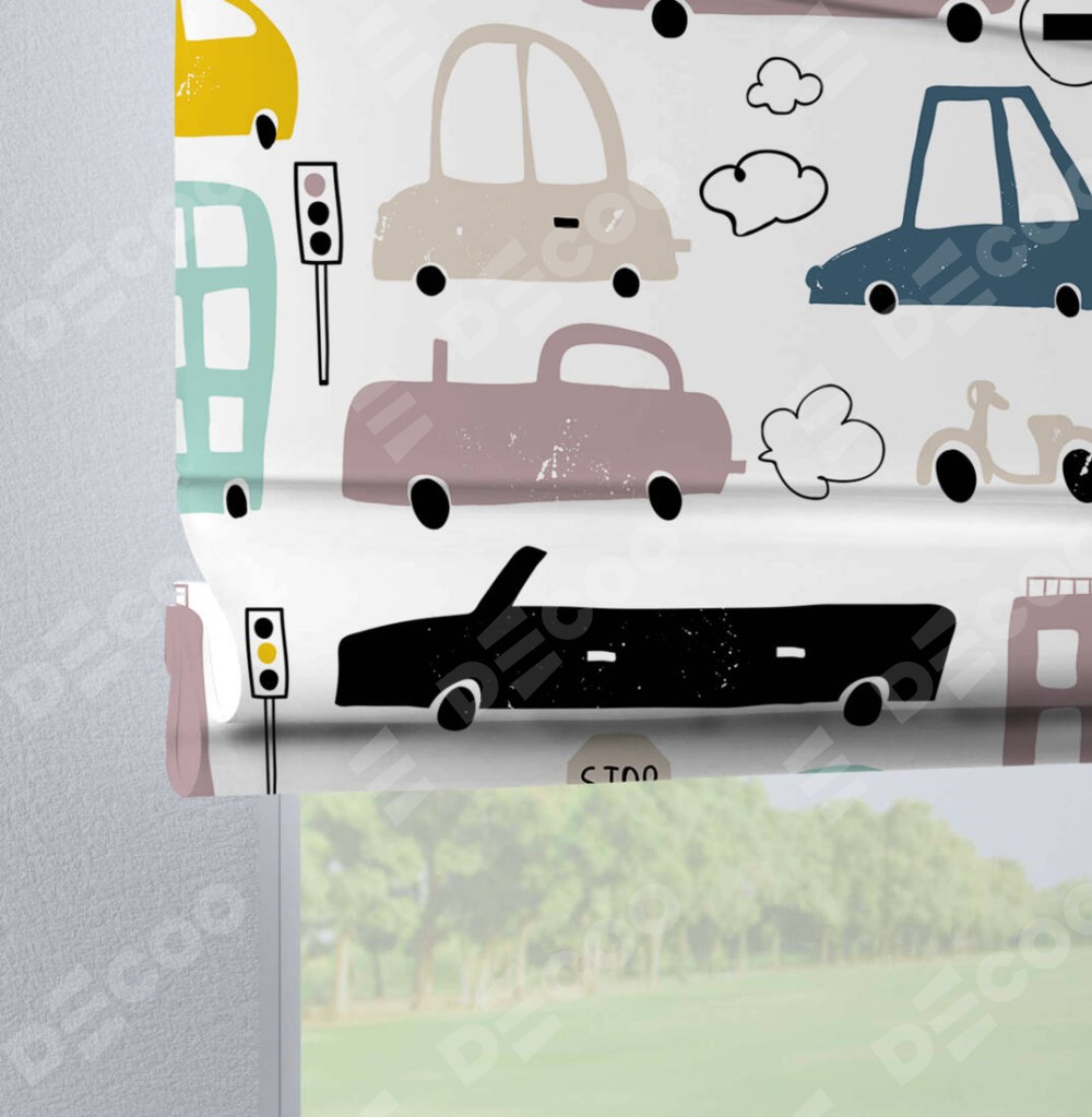 Римская штора производителя «Cortin», используется для проёма, пошита из ткани блэкаут с нанесением сублимационной печати «Красочный трафик». Данная модель пошита на петлях, комплектуется на выбор круглым карнизом и подходит для монтажа на стену. Римская штора на петлях имеет простую систему регулировки высоты, отличительным преимуществом данной модели является простой способ монтажа. Достаточно повесить ее на трубу и штора готова!