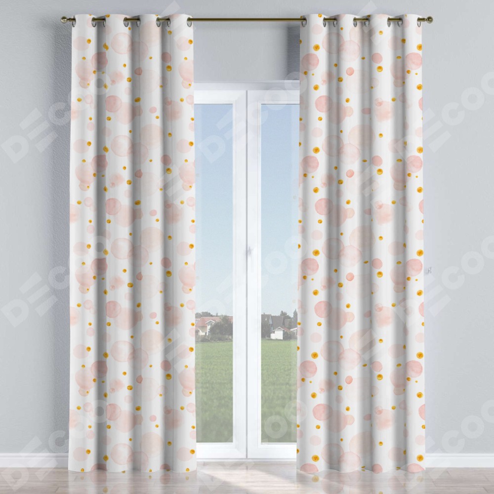 Комплект прямых штор, от производителя «Cortin», пошиты из ткани блэкаут с нанесением сублимационной печати «Круги и точки». Данная модель пошита на люверсах, комплектуется на выбор круглым карнизом и подходит для монтажа на стену или потолок. Прямые шторы на люверсах шьются по стандарту с коэффициентом 1/2 (на 100 см. ширины проёма 200 см. ширины ткани), отличительным преимуществом данной модели является простой способ монтажа. Достаточно повесить ее на трубу и штора готова!