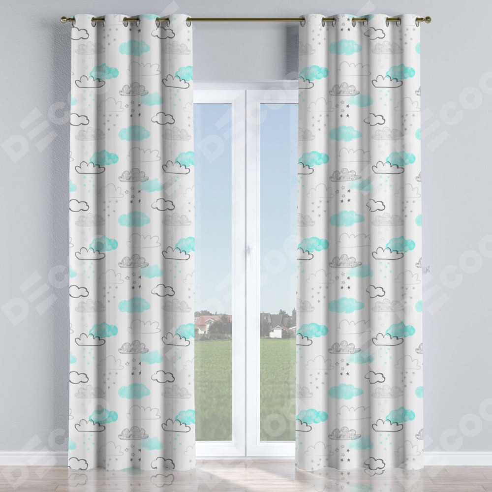 Комплект прямых штор, от производителя «Cortin», пошиты из ткани блэкаут с нанесением сублимационной печати «Облака и звёзды». Данная модель пошита на люверсах, комплектуется на выбор круглым карнизом и подходит для монтажа на стену или потолок. Прямые шторы на люверсах шьются по стандарту с коэффициентом 1/2 (на 100 см. ширины проёма 200 см. ширины ткани), отличительным преимуществом данной модели является простой способ монтажа. Достаточно повесить ее на трубу и штора готова!