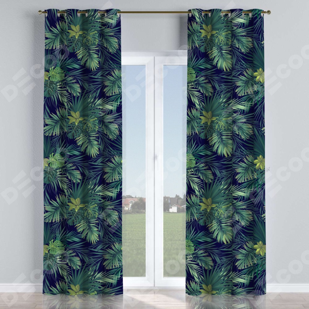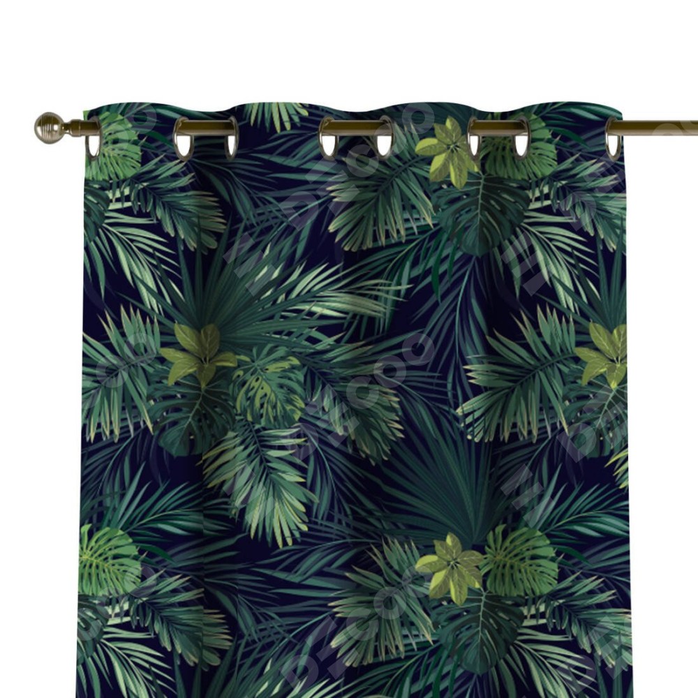 Комплект прямых штор, от производителя «Cortin», пошиты из ткани блэкаут с нанесением сублимационной печати «Пальмовые листья». Данная модель пошита на люверсах, комплектуется на выбор круглым карнизом и подходит для монтажа на стену или потолок. Прямые шторы на люверсах шьются по стандарту с коэффициентом 1/2 (на 100 см. ширины проёма 200 см. ширины ткани), отличительным преимуществом данной модели является простой способ монтажа. Достаточно повесить ее на трубу и штора готова!