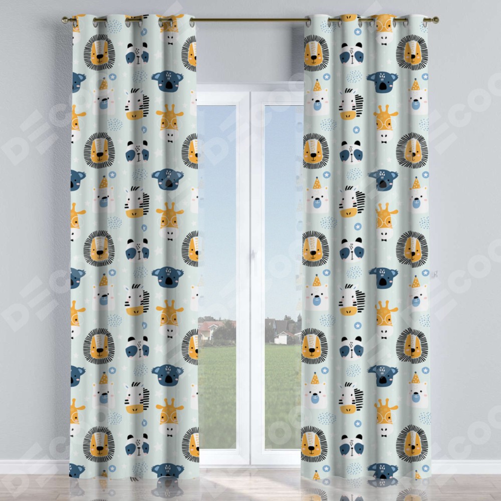 Комплект прямых штор, от производителя «Cortin», пошиты из ткани блэкаут с нанесением сублимационной печати «Чудесный зоопарк». Данная модель пошита на люверсах, комплектуется на выбор круглым карнизом и подходит для монтажа на стену или потолок. Прямые шторы на люверсах шьются по стандарту с коэффициентом 1/2 (на 100 см. ширины проёма 200 см. ширины ткани), отличительным преимуществом данной модели является простой способ монтажа. Достаточно повесить ее на трубу и штора готова!