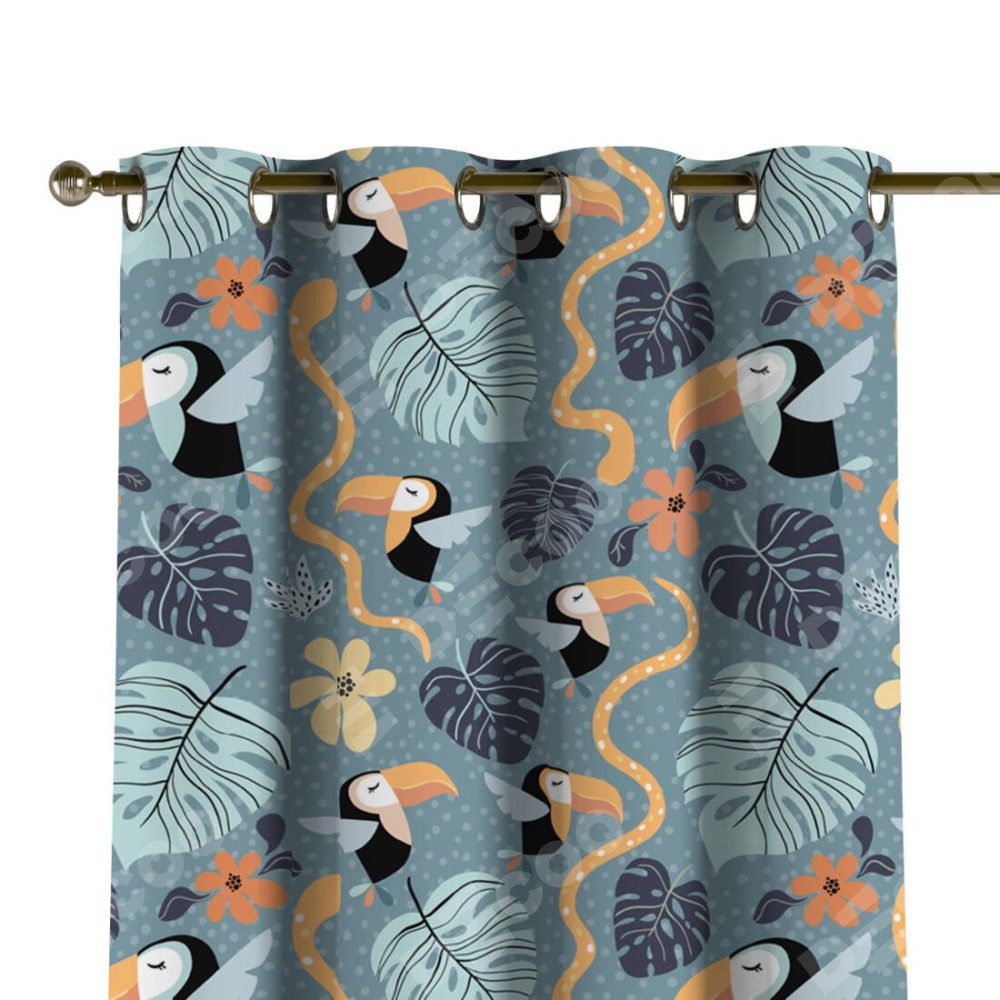 Комплект прямых штор, от производителя «Cortin», пошиты из ткани блэкаут с нанесением сублимационной печати «Экзотические птицы». Данная модель пошита на люверсах, комплектуется на выбор круглым карнизом и подходит для монтажа на стену или потолок. Прямые шторы на люверсах шьются по стандарту с коэффициентом 1/2 (на 100 см. ширины проёма 200 см. ширины ткани), отличительным преимуществом данной модели является простой способ монтажа. Достаточно повесить ее на трубу и штора готова!
