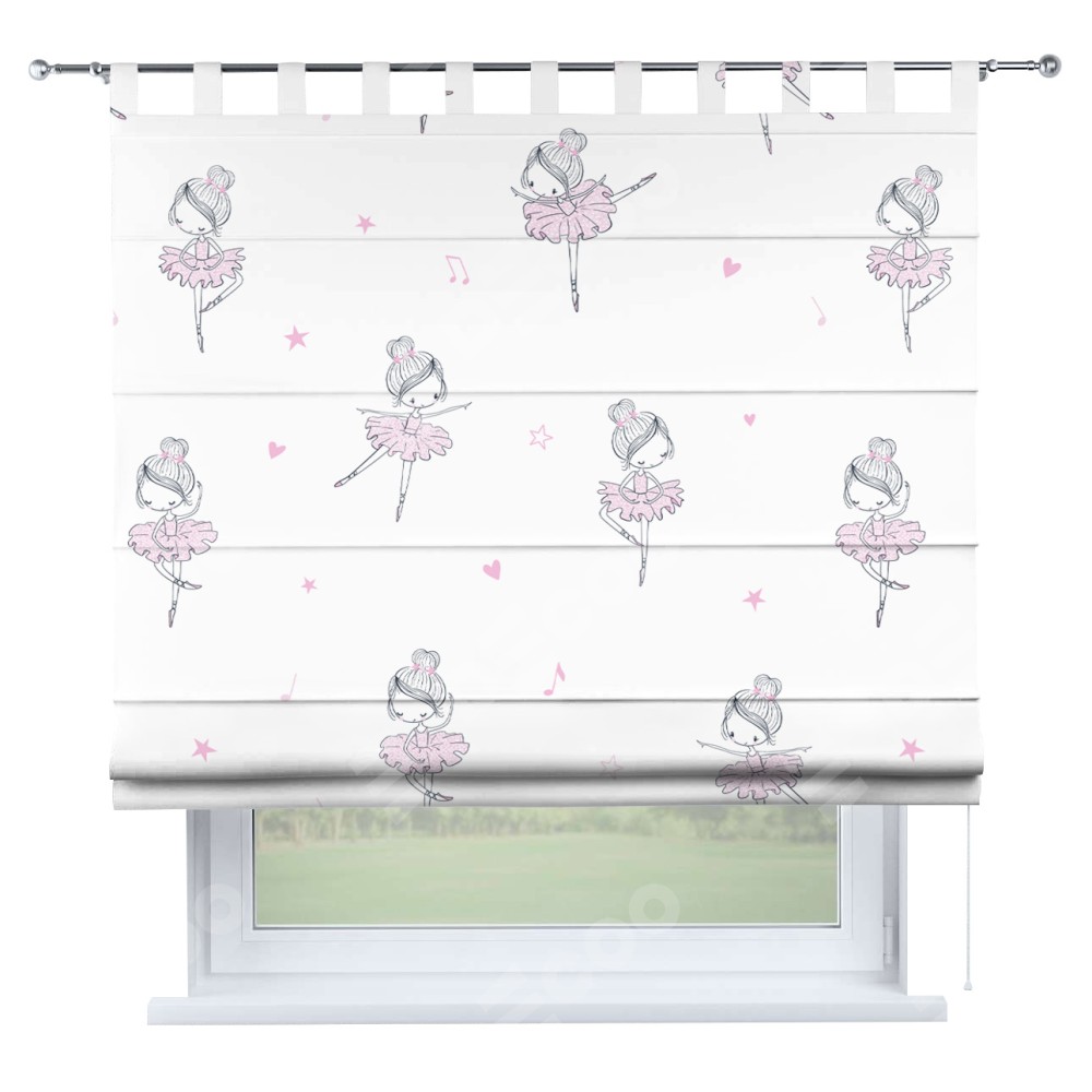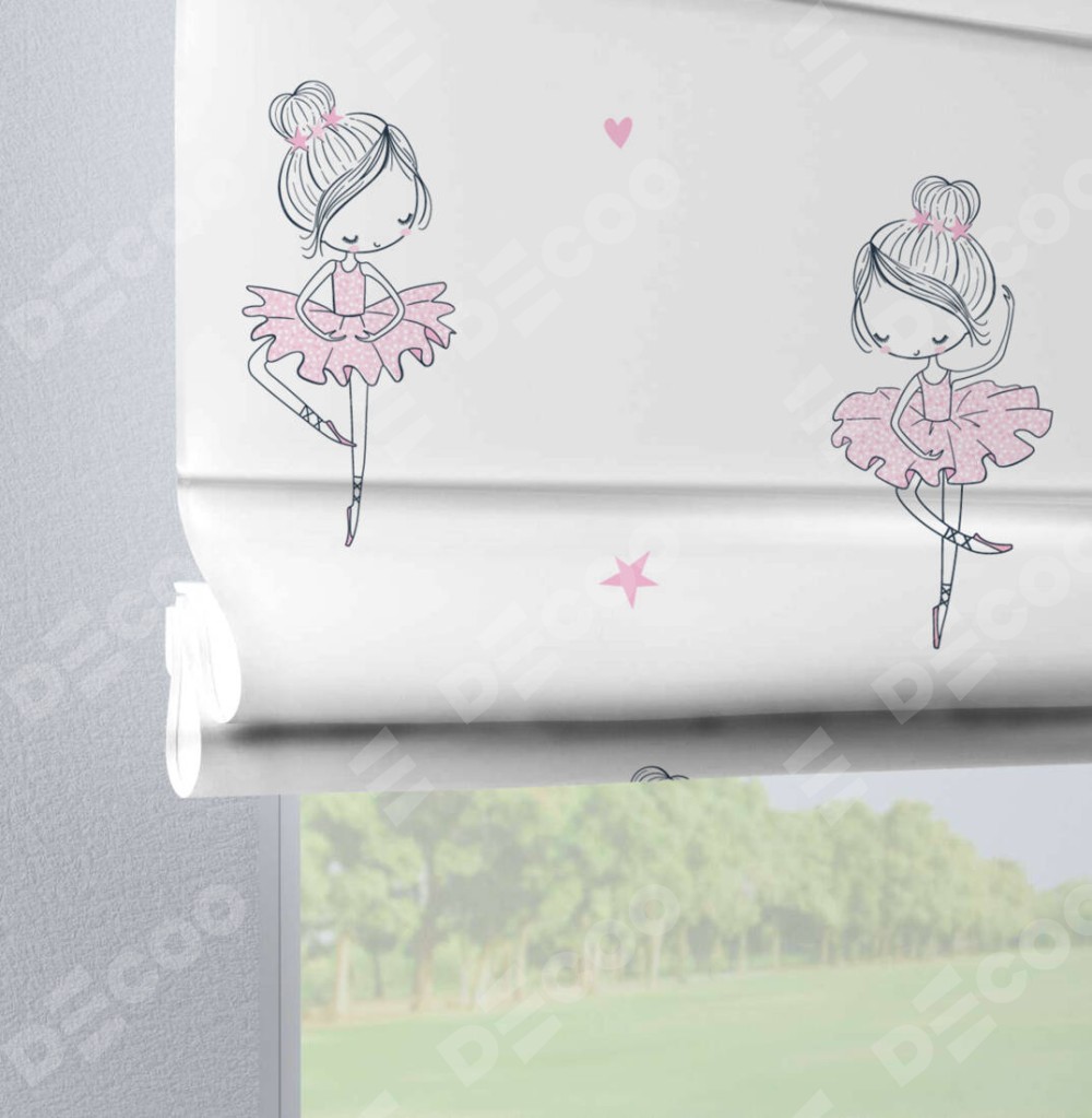 Римская штора производителя «Cortin», используется для проёма, пошита из ткани блэкаут с нанесением сублимационной печати «Маленькая балерина». Данная модель пошита на петлях, комплектуется на выбор круглым карнизом и подходит для монтажа на стену. Римская штора на петлях имеет простую систему регулировки высоты, отличительным преимуществом данной модели является простой способ монтажа. Достаточно повесить ее на трубу и штора готова!