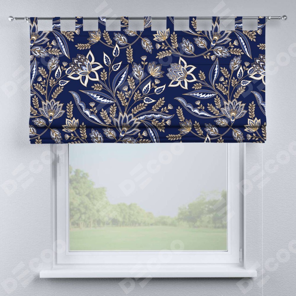 Римская штора производителя «Cortin», используется для проёма, пошита из ткани блэкаут с нанесением сублимационной печати «Индиго батик». Данная модель пошита на петлях, комплектуется на выбор круглым карнизом и подходит для монтажа на стену. Римская штора на петлях имеет простую систему регулировки высоты, отличительным преимуществом данной модели является простой способ монтажа. Достаточно повесить ее на трубу и штора готова!
