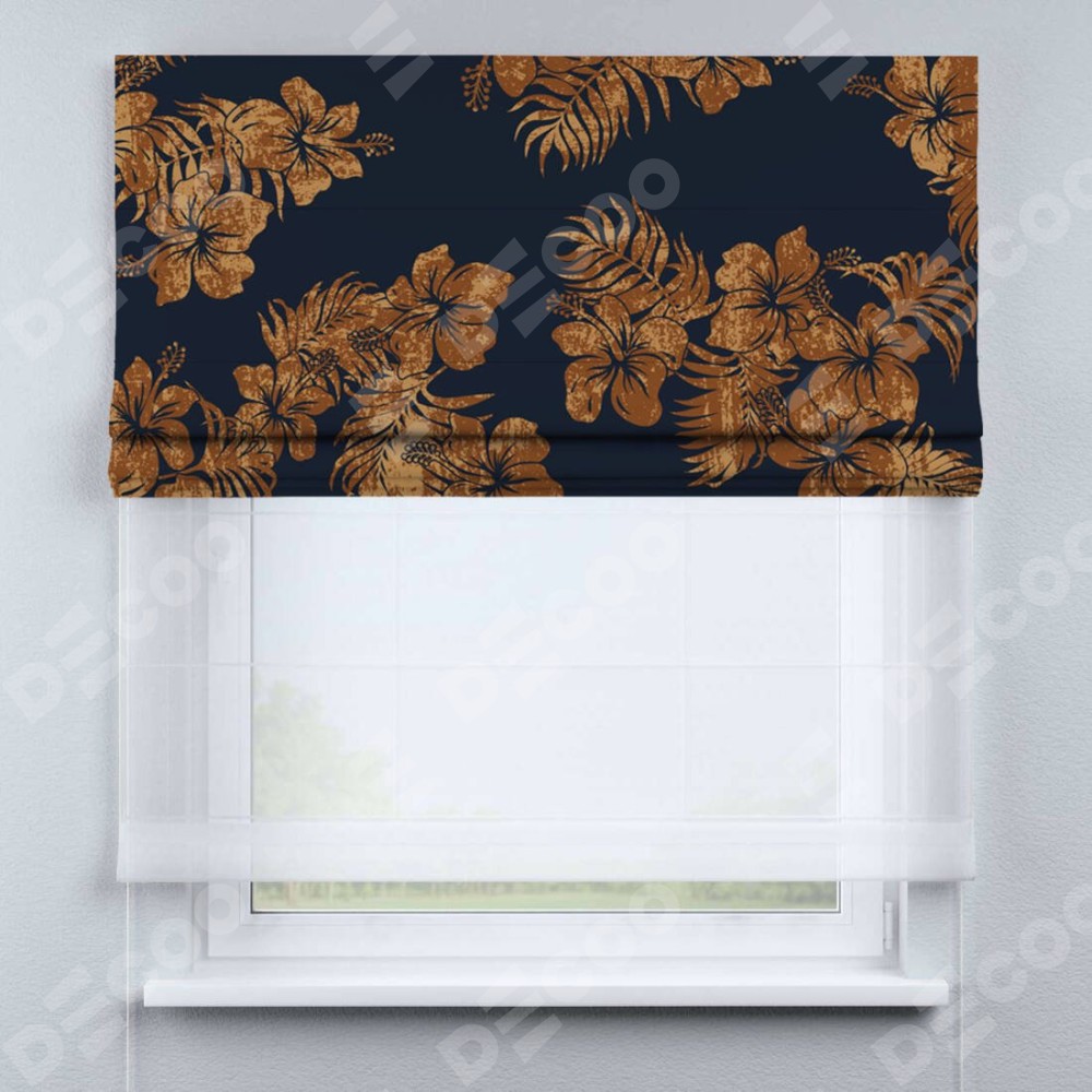 Римская штора день-ночь производителя «Cortin», используется для проёма, пошита из двух полотен, с лицевой блэкаут с нанесением сублимационной печати «Китайская роза», вторая ткань тюль (по стандарту комплектуется тюль белого цвета артикул V-01). Имеет универсальный механизм и подходит для монтажа: на потолок, на стену и в нишу.