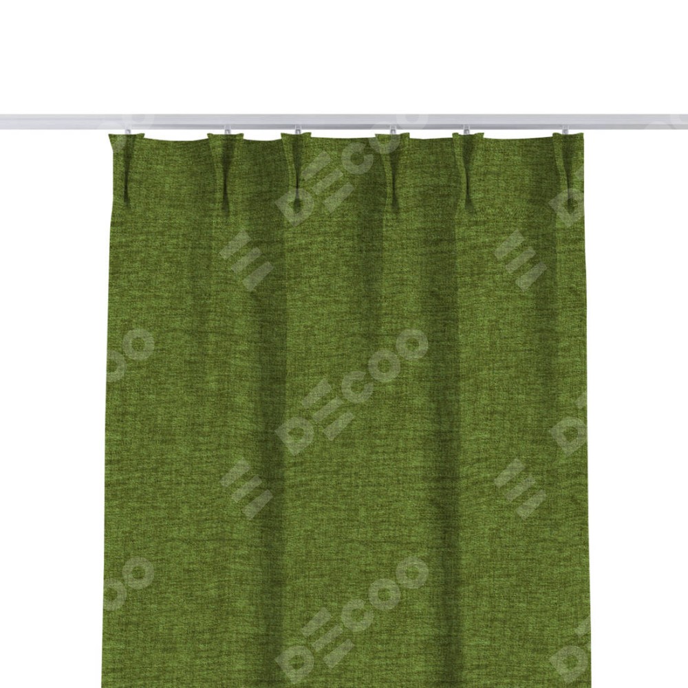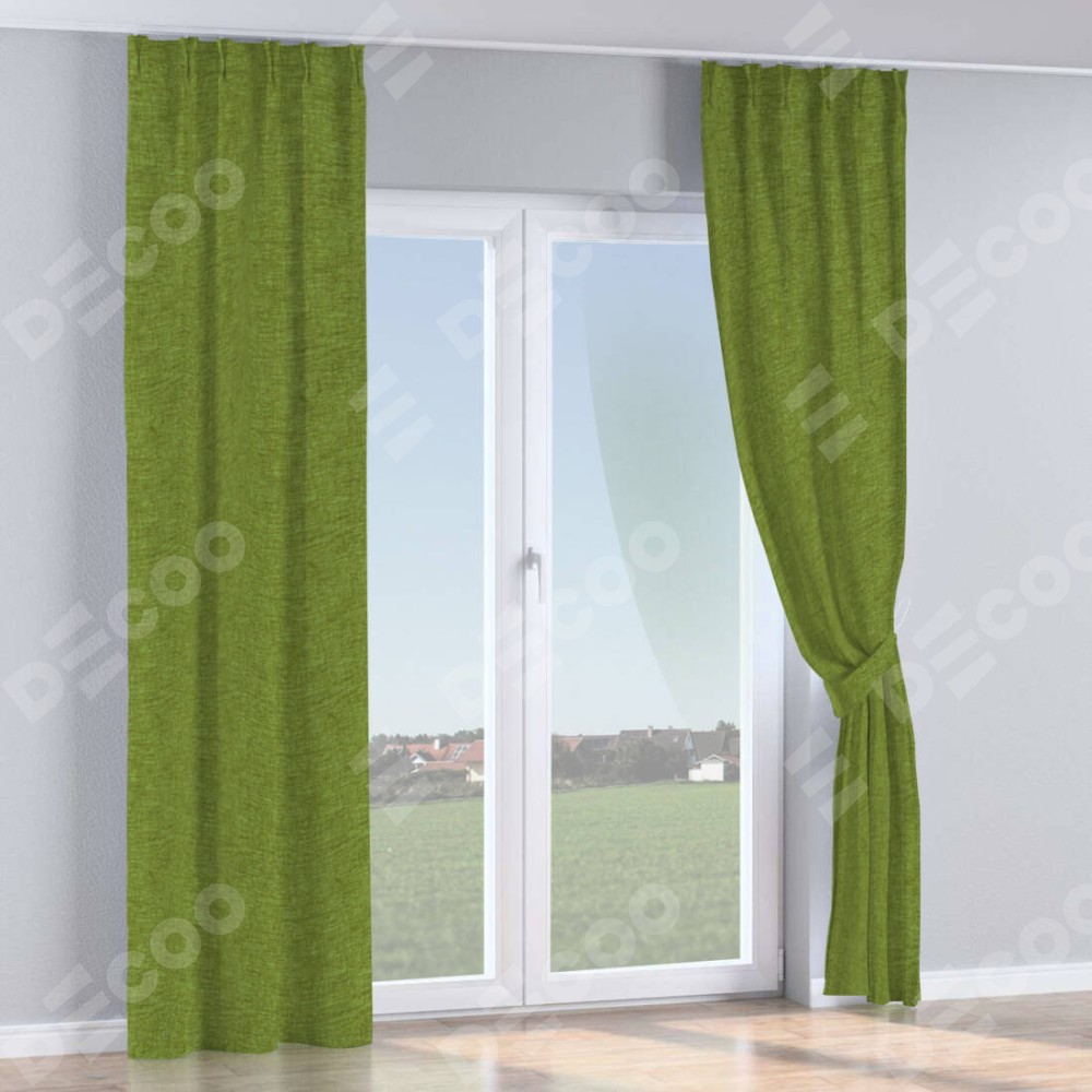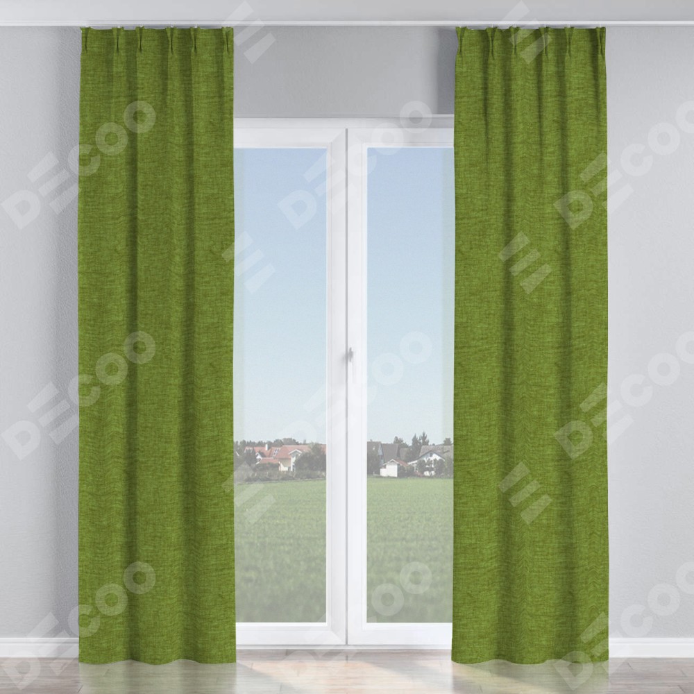 Комплект прямых штор, от производителя «Cortin», пошиты из ткани рогожка димаут салатовый, артикул ткани 80423. С изнаночной стороны в верхней части штор пристрачивается шторная лента с декоративными складками «Кустик». Для создания элегантных складок прямые шторы шьются по стандарту с коэффициентом 1:2 (на 100 см. ширины проёма 200 см. ширины ткани).