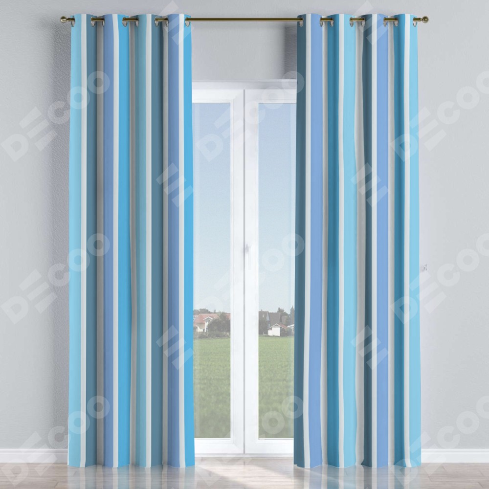Комплект прямых штор, от производителя «Cortin», пошиты из ткани блэкаут с нанесением сублимационной печати «Сине-голубые вертикальные полоски». Данная модель пошита на люверсах, комплектуется на выбор круглым карнизом и подходит для монтажа на стену или потолок. Прямые шторы на люверсах шьются по стандарту с коэффициентом 1/2 (на 100 см. ширины проёма 200 см. ширины ткани), отличительным преимуществом данной модели является простой способ монтажа. Достаточно повесить ее на трубу и штора готова!