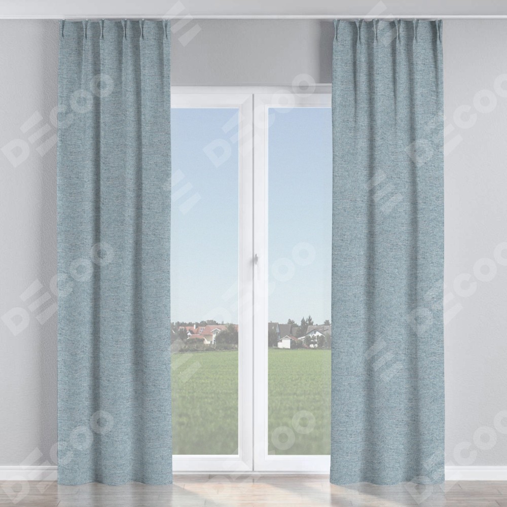 Комплект прямых штор, от производителя «Cortin», пошиты из ткани стиф димаут светло-серый, артикул ткани 44025. С изнаночной стороны в верхней части штор пристрачивается шторная лента с декоративными складками «Кустик». Для создания элегантных складок прямые шторы шьются по стандарту с коэффициентом 1:2 (на 100 см. ширины проёма 200 см. ширины ткани).