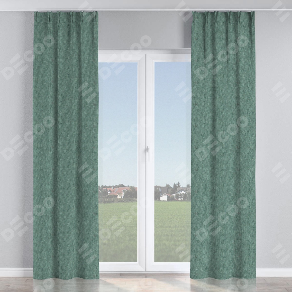Комплект прямых штор, от производителя «Cortin», пошиты из ткани стиф димаут серо-голубой, артикул ткани 44029. С изнаночной стороны в верхней части штор пристрачивается шторная лента с декоративными складками «Кустик». Для создания элегантных складок прямые шторы шьются по стандарту с коэффициентом 1:2 (на 100 см. ширины проёма 200 см. ширины ткани).