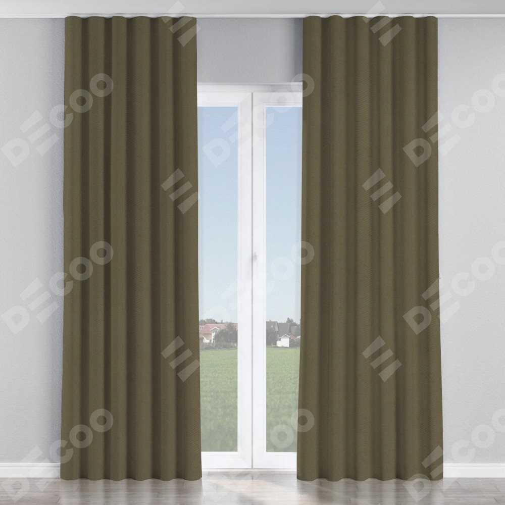 Комплект прямых штор, от производителя «Cortin», пошиты из ткани блэкаут однотонный кофейный, артикул ткани 6668−22. С изнаночной стороны в верхней части штор пристрачивается шторная лента с декоративными складками «Волна». Для создания элегантных складок прямые шторы шьются по стандарту с коэффициентом 1:2 (на 100 см. ширины проёма 200 см. ширины ткани).