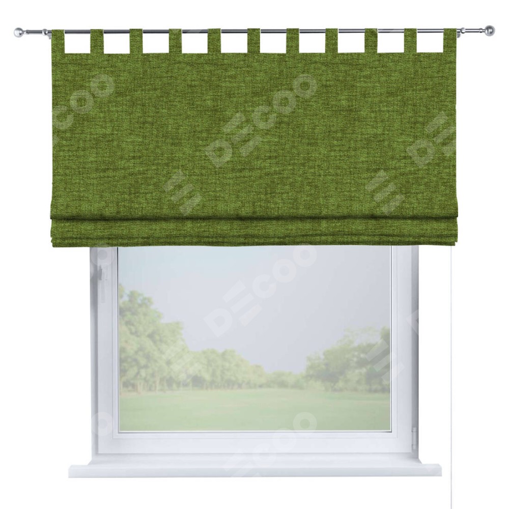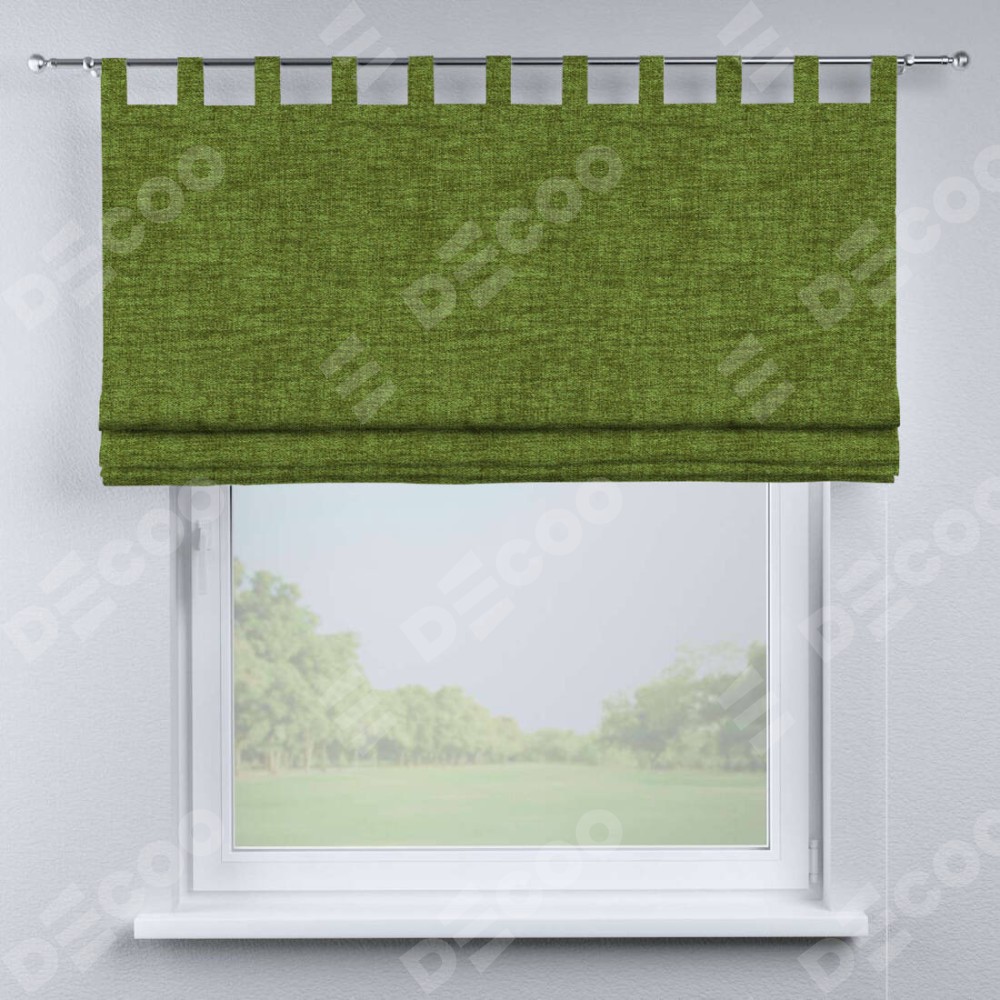 Римская штора производителя «Cortin», используется для проёма, пошита из ткани рогожка димаут салатовый, артикул ткани 80423. Данная модель пошита на петлях, комплектуется на выбор круглым карнизом и подходит для монтажа на стену. Римская штора на петлях имеет простую систему регулировки высоты, отличительным преимуществом данной модели является простой способ монтажа. Достаточно повесить ее на трубу и штора готова!