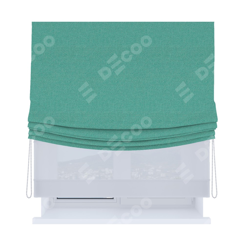 Римская штора день-ночь производителя «Cortin», используется для проёма, пошита из двух полотен, с лицевой стороны лён димаут бирюзовый артикул 23, вторая ткань тюль (по стандарту комплектуется тюль белого цвета артикул V-01). Имеет универсальный механизм и подходит для монтажа: на потолок, на стену и в нишу. Удобное управление каждой шторой отдельно.