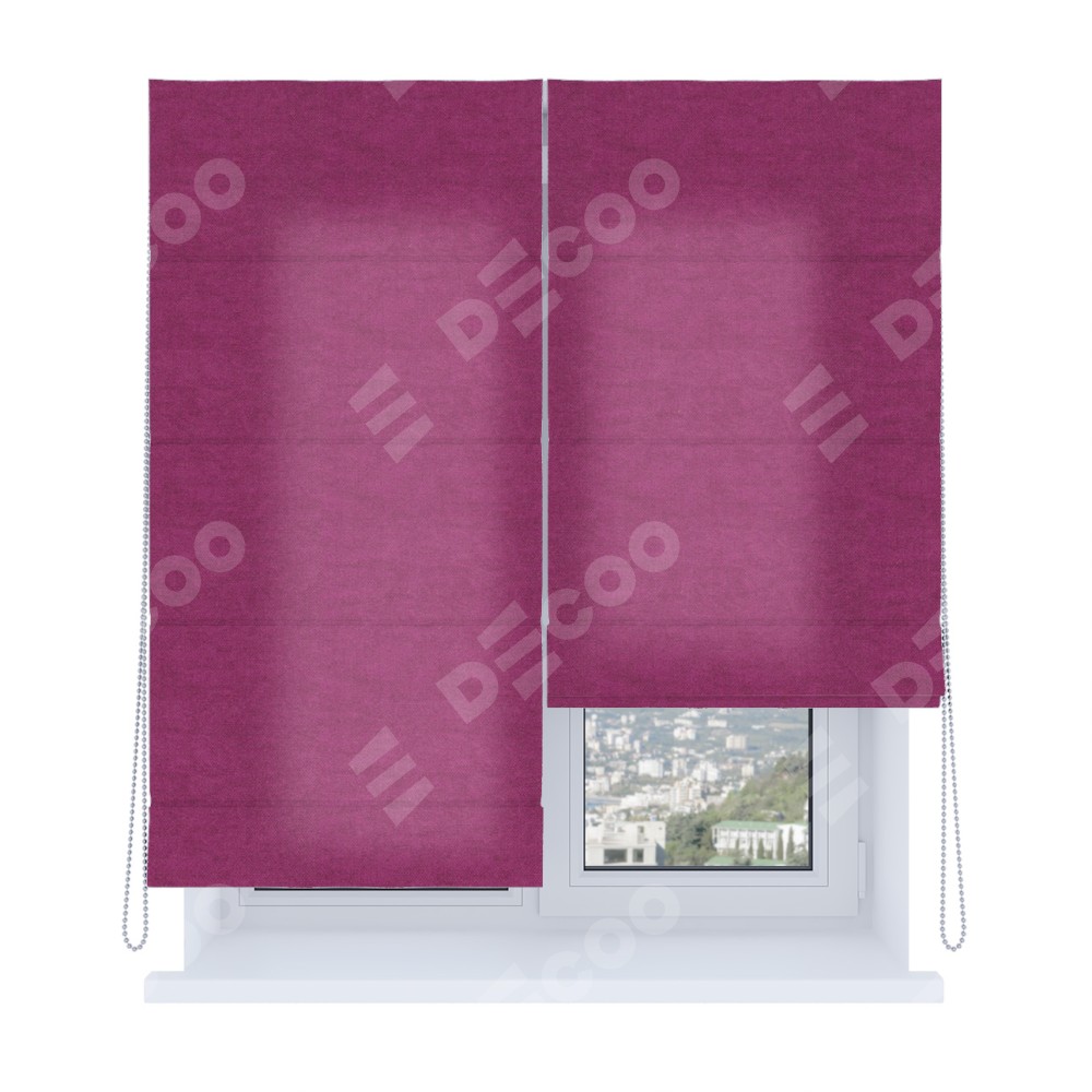 Римская штора производителя «Cortin», используется для проёма, пошита из ткани вельвет фиолетовый, артикул ткани 85552. Имеет универсальный механизм и подходит для монтажа: на потолок, на стену и в нишу. Удобное управление каждой шторой отдельно.