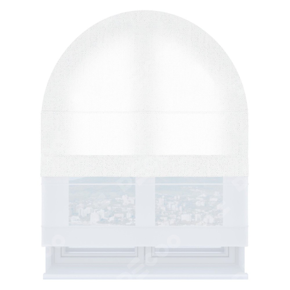 Римская штора день-ночь производителя «Cortin», используется для арочного проёма, пошита из двух полотен, с лицевой стороны лён белоснежный артикул 7438, вторая ткань тюль (по стандарту комплектуется тюль белого цвета артикул V-01). Штора шьётся по индивидуальным размерам, для данного типа римской шторы возможная ширина от 60 до 300 см. Удобное управление каждой шторой отдельно.