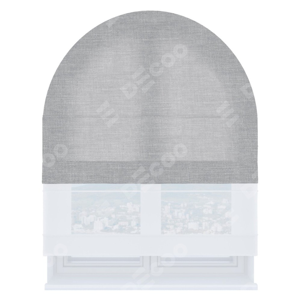 Римская штора день-ночь производителя «Cortin», используется для арочного проёма, пошита из двух полотен, с лицевой стороны лён серый артикул 7440, вторая ткань тюль (по стандарту комплектуется тюль белого цвета артикул V-01). Штора шьётся по индивидуальным размерам, для данного типа римской шторы возможная ширина от 60 до 300 см. Удобное управление каждой шторой отдельно.