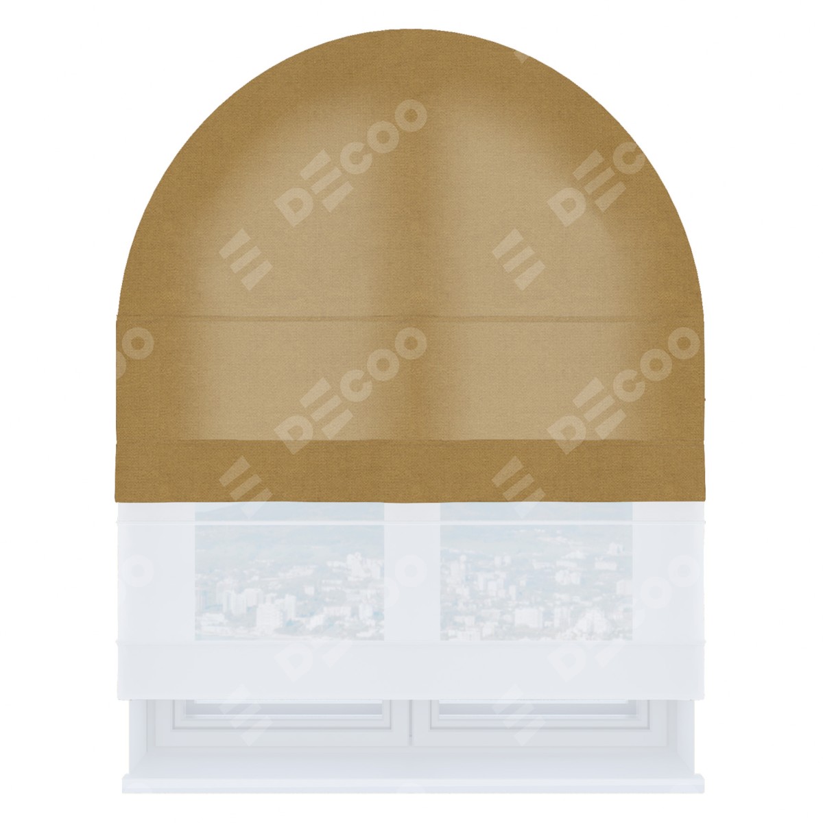 Римская штора день-ночь производителя «Cortin», используется для арочного проёма, пошита из двух полотен, с лицевой стороны вельвет горчица артикул 17760, вторая ткань тюль (по стандарту комплектуется тюль белого цвета артикул V-01). Штора шьётся по индивидуальным размерам, для данного типа римской шторы возможная ширина от 60 до 300 см. Удобное управление каждой шторой отдельно.