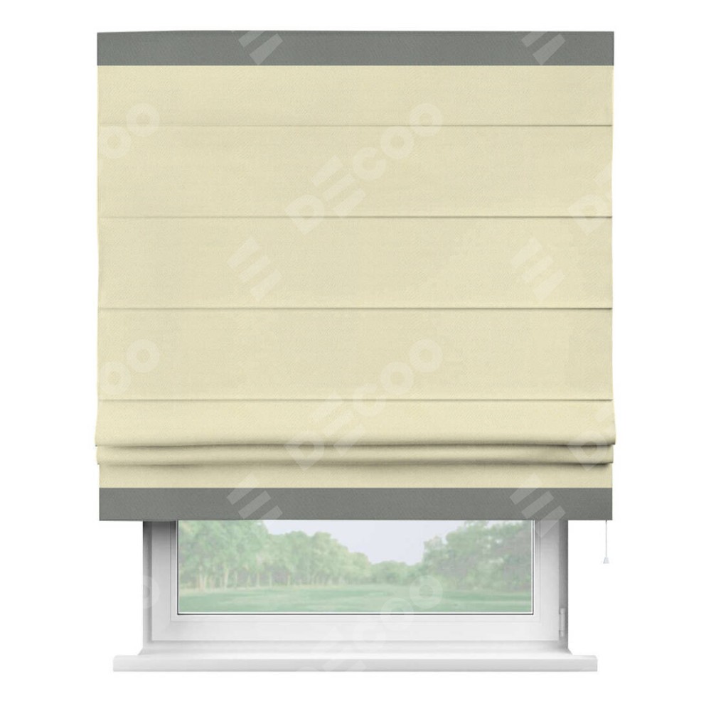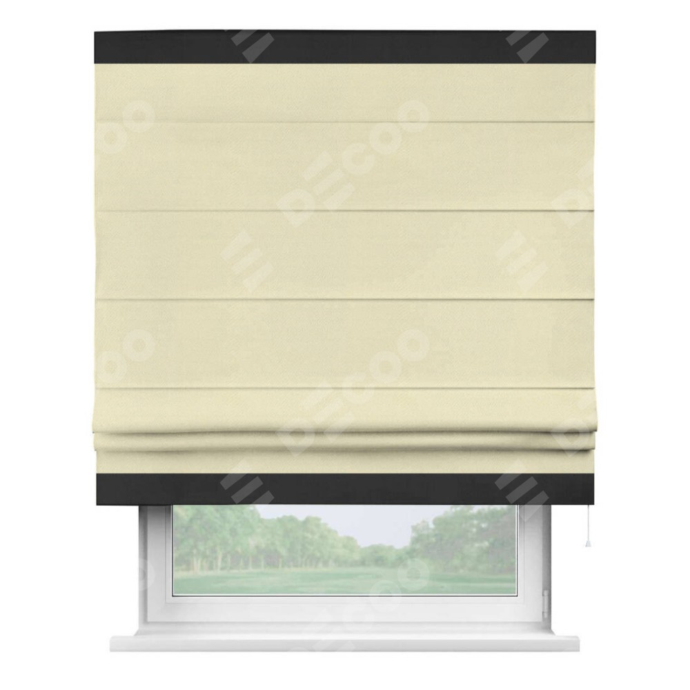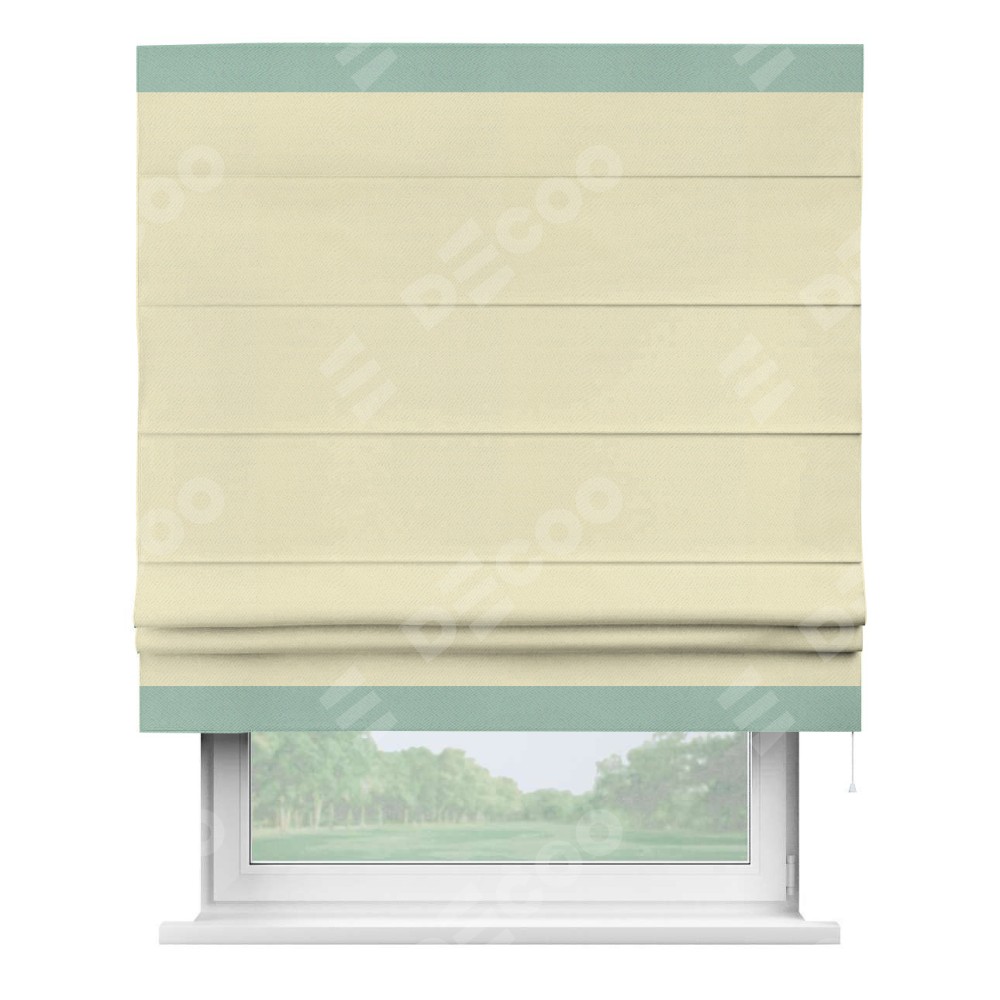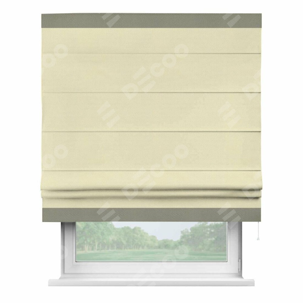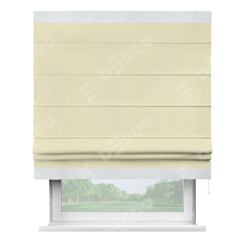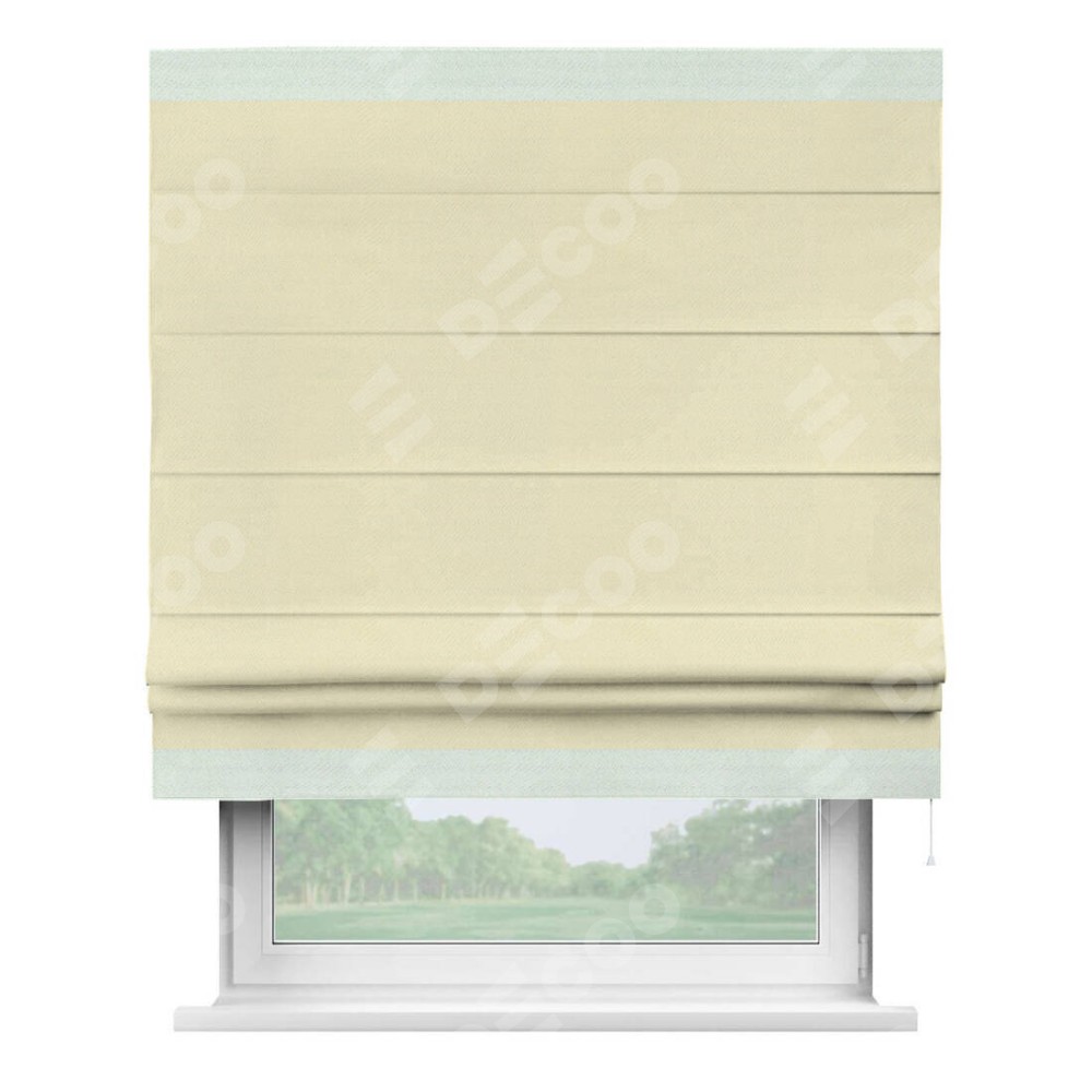 Римская штора производителя «Cortin», используется для проёма, пошита из ткани блэкаут однотонный бежевый, артикул ткани 88283. Отделка шторы кантом «Горизонт», ткань для канта используется из блэкаута однотонного разной расцветки на выбор. Имеет универсальный механизм и подходит для монтажа: на потолок, на стену и в нишу.