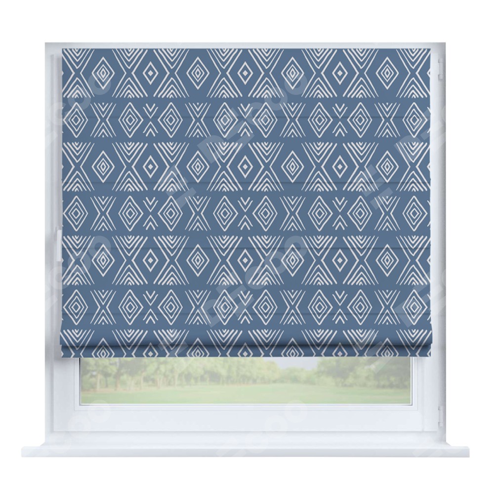 Римская штора производителя «Cortin», устанавливается на створку окна, пошита из ткани блэкаут с нанесением сублимационной печати «Графический орнамент». Штора шьётся по индивидуальным размерам, для данного типа римской шторы возможная ширина от 35 до 150 см., высота до 250 см.