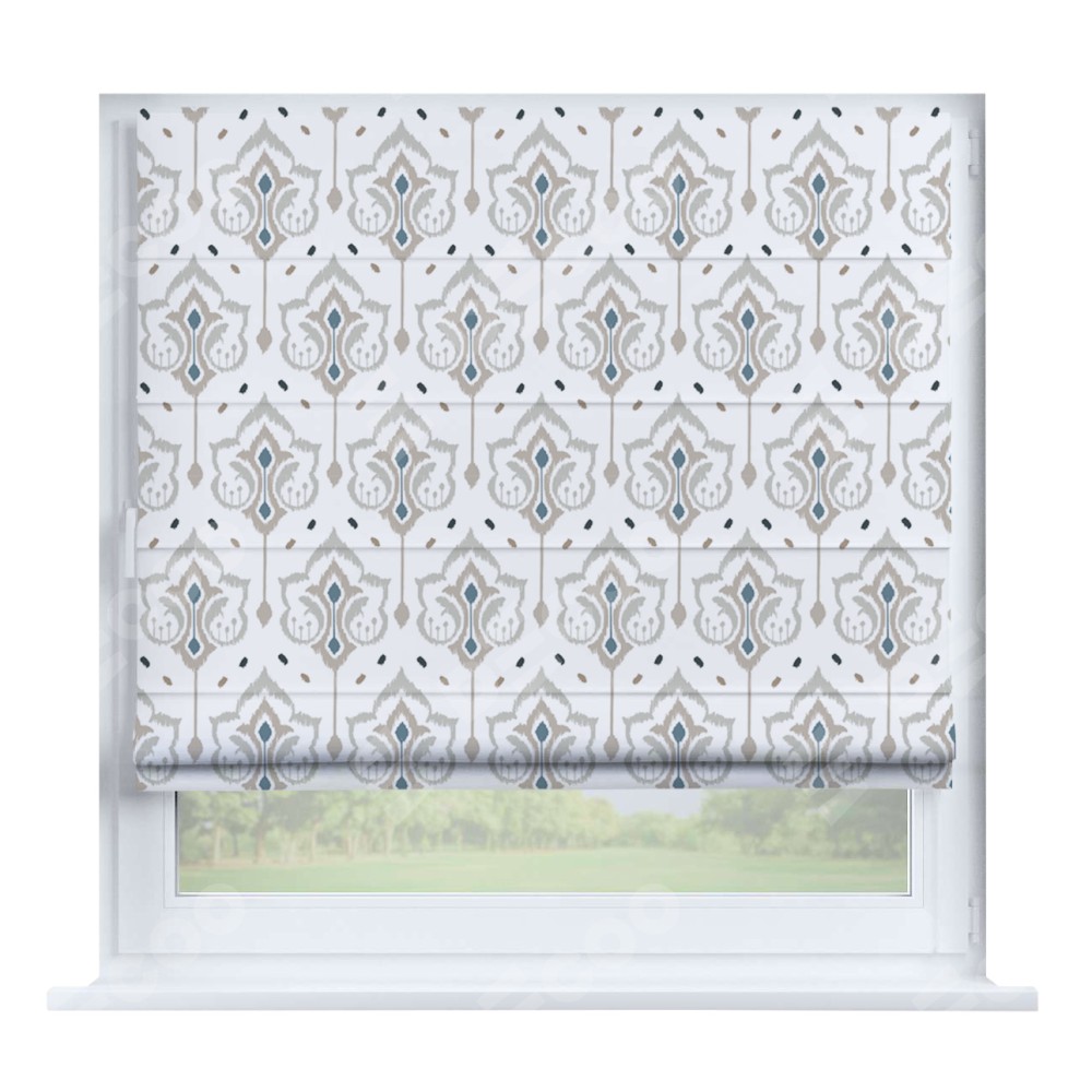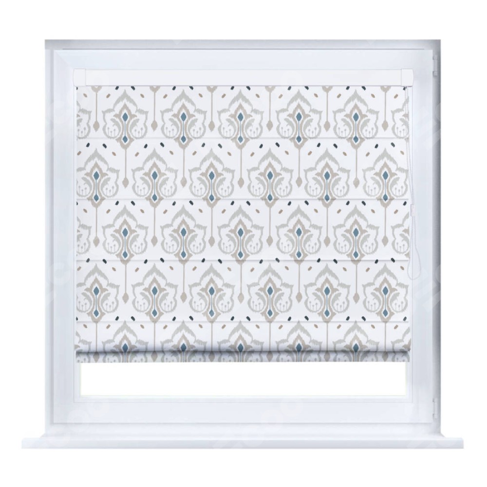 Римская штора производителя «Cortin», устанавливается на створку окна, пошита из ткани блэкаут с нанесением сублимационной печати «Икат узор». Штора шьётся по индивидуальным размерам, для данного типа римской шторы возможная ширина от 35 до 150 см., высота до 250 см.