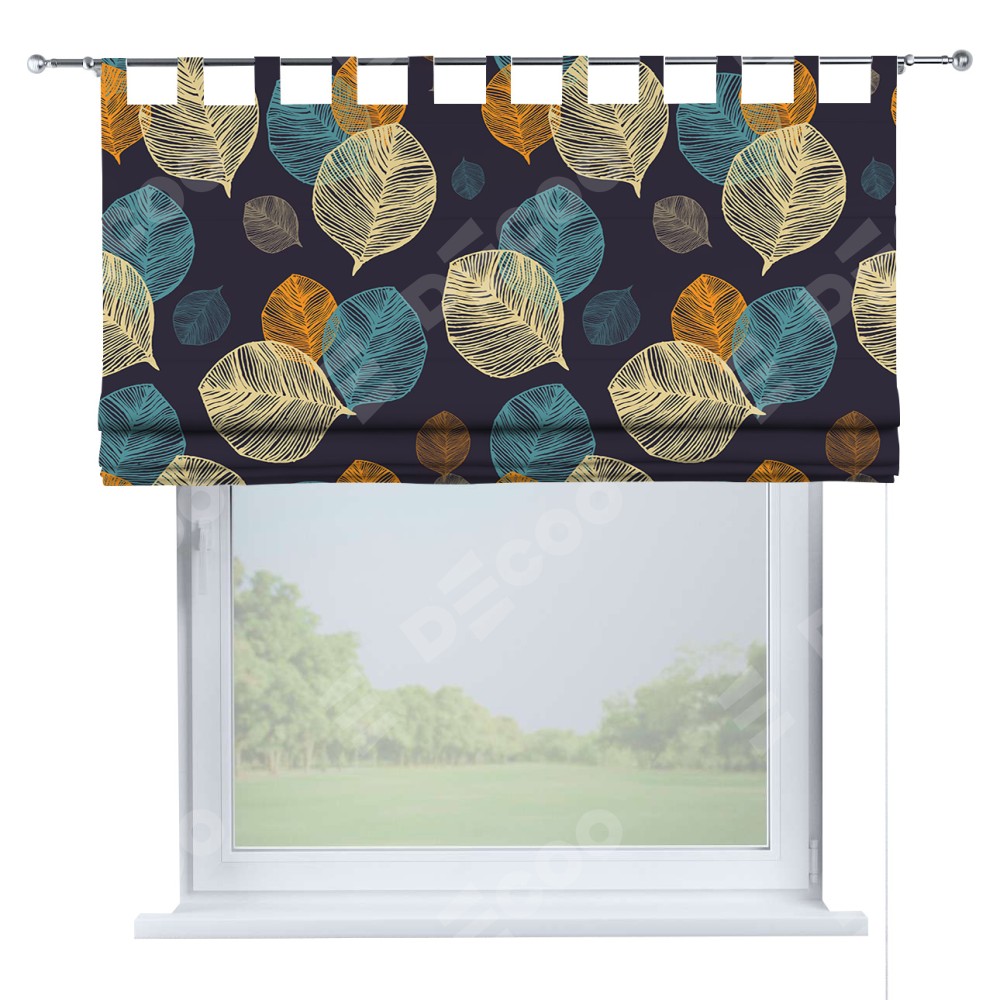 Римская штора производителя «Cortin», используется для проёма, пошита из ткани блэкаут с нанесением сублимационной печати «Листья в ночи». Данная модель пошита на петлях, комплектуется на выбор круглым карнизом и подходит для монтажа на стену. Римская штора на петлях имеет простую систему регулировки высоты, отличительным преимуществом данной модели является простой способ монтажа. Достаточно повесить ее на трубу и штора готова!