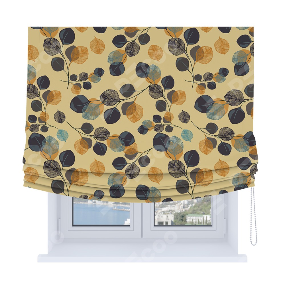Римская штора Soft с мягкими складками, «Листья в янтаре»