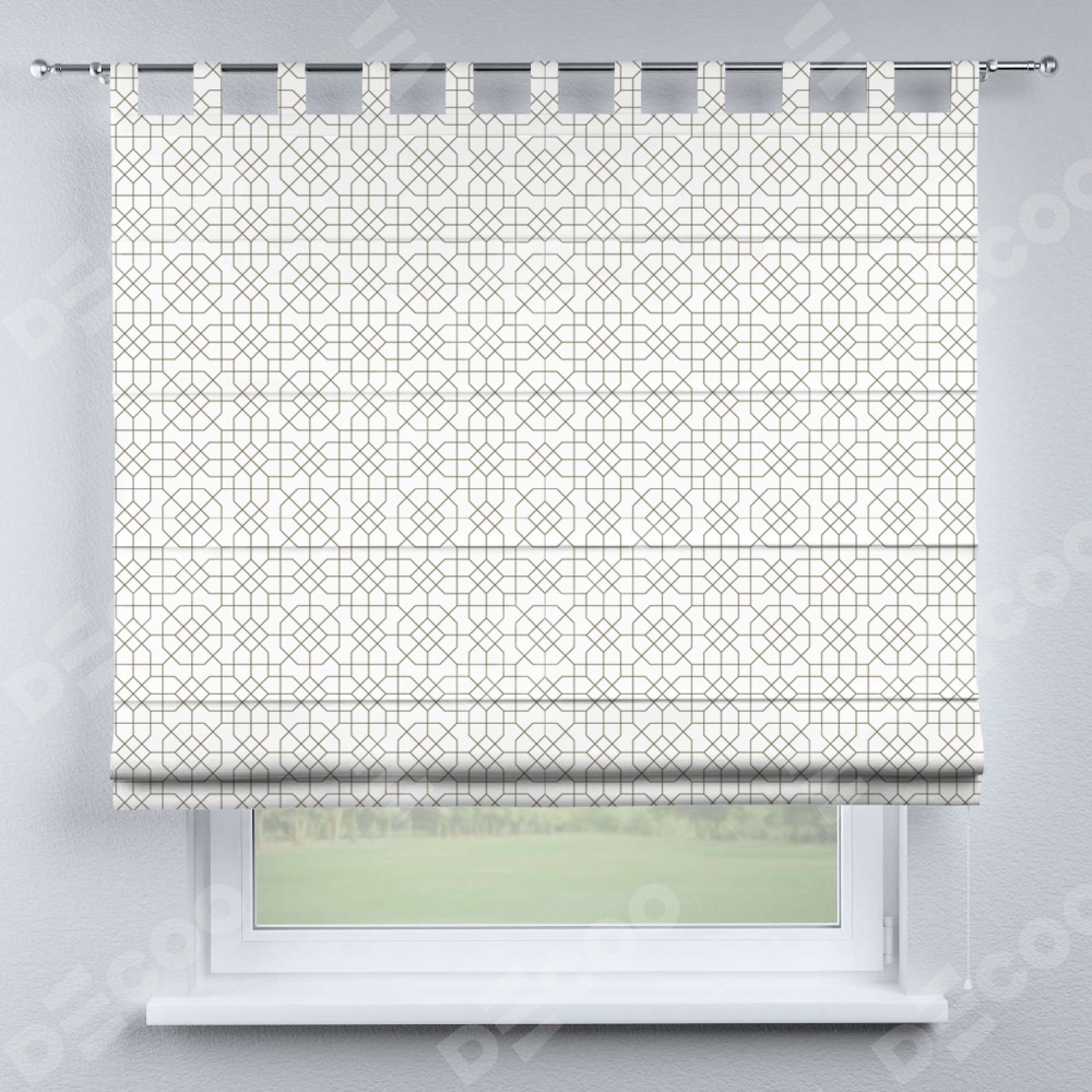 Римская штора производителя «Cortin», используется для проёма, пошита из ткани блэкаут с нанесением сублимационной печати «Орнамент из тонких линий». Данная модель пошита на петлях, комплектуется на выбор круглым карнизом и подходит для монтажа на стену. Римская штора на петлях имеет простую систему регулировки высоты, отличительным преимуществом данной модели является простой способ монтажа. Достаточно повесить ее на трубу и штора готова!