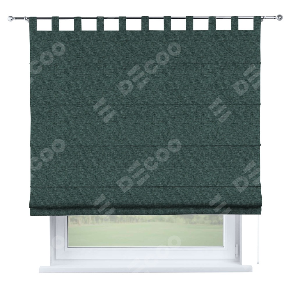 Римская штора производителя «Cortin», используется для проёма, пошита из ткани стиф димаут сине-зелёный, артикул ткани 18194. Данная модель пошита на петлях, комплектуется на выбор круглым карнизом и подходит для монтажа на стену. Римская штора на петлях имеет простую систему регулировки высоты, отличительным преимуществом данной модели является простой способ монтажа. Достаточно повесить ее на трубу и штора готова!