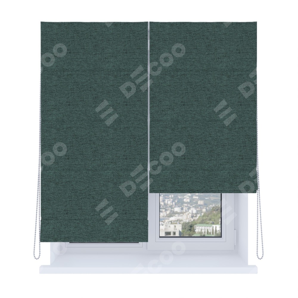 Римская штора производителя «Cortin», используется для проёма, пошита из ткани стиф димаут сине-зелёный, артикул ткани 18194. Имеет универсальный механизм и подходит для монтажа: на потолок, на стену и в нишу. Удобное управление каждой шторой отдельно.