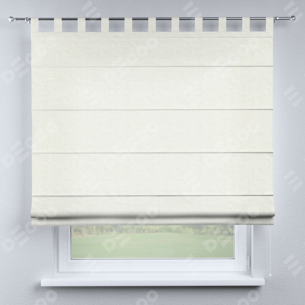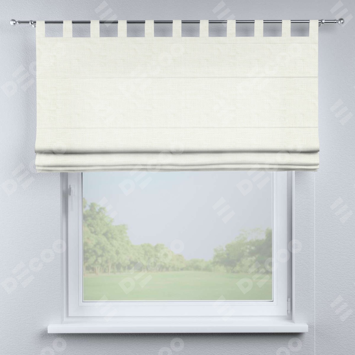 Римская штора производителя «Cortin», используется для проёма, пошита из ткани лён молочный, артикул ткани 23568. Данная модель пошита на петлях, комплектуется на выбор круглым карнизом и подходит для монтажа на стену. Римская штора на петлях имеет простую систему регулировки высоты, отличительным преимуществом данной модели является простой способ монтажа. Достаточно повесить ее на трубу и штора готова!